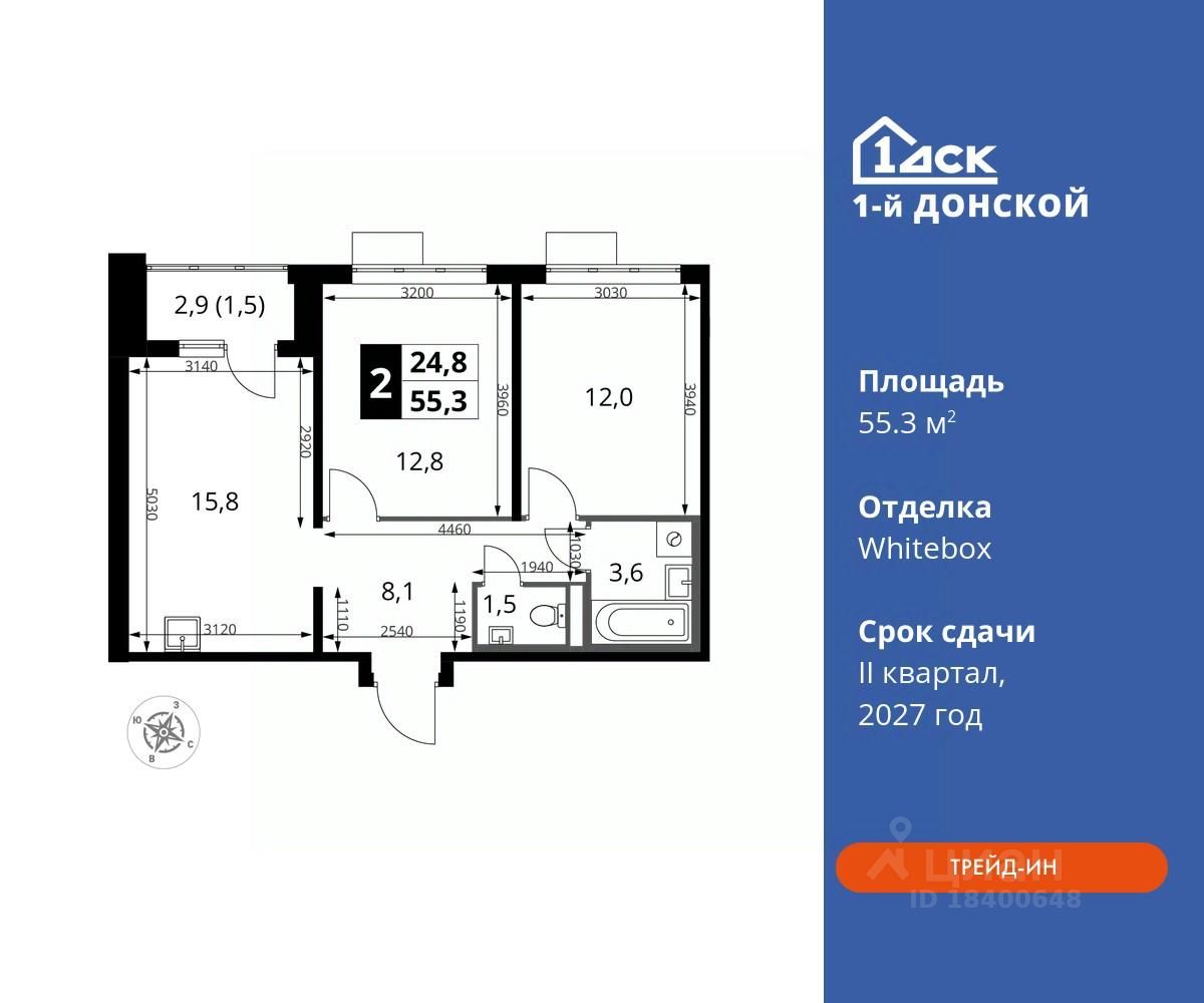 Максимальные скидки при 100% оплате. Trade-in вместо первоначального взноса - выгодно обменяйте вашу квартиру на новую! Прямая продажа от застройщика! Жилой Комплекс класса Комфорт плюс. Продаётся 2-к квартира номер 818 общей площадью 55.3 кв.м на 11-м этаже 24 этажного дома. Отделка Whitebox.