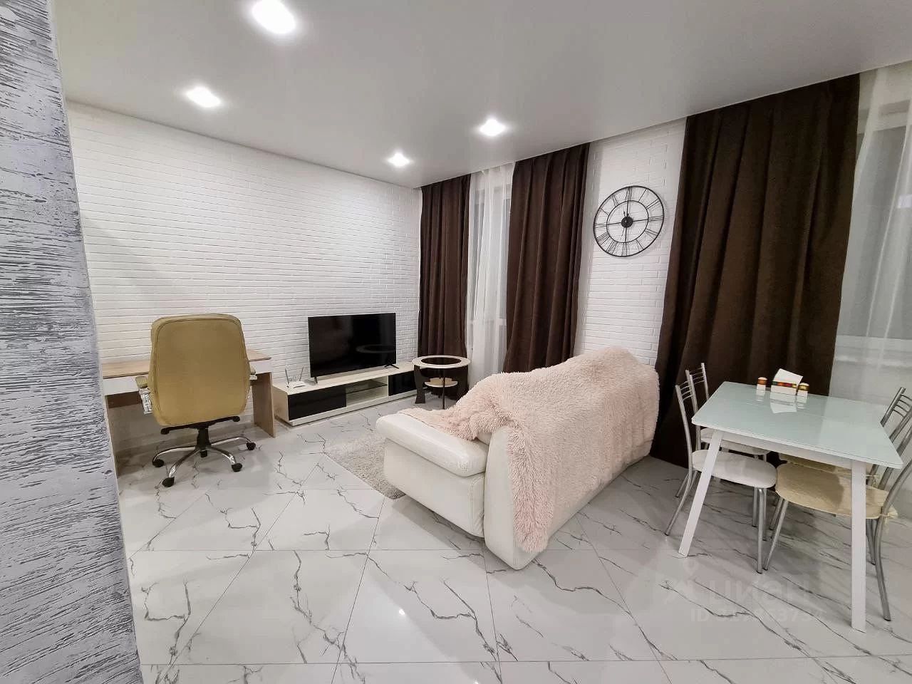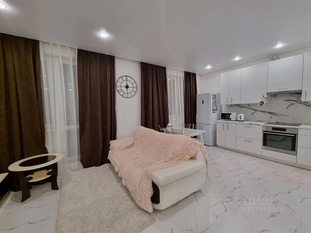 В квартире выполнен дизайнерский ремонт из дорогих материалов, имеется всё необходимое для комфортного проживания - двуспальная кровать, двуспальный диван, холодильник, телевизор, стиральная машина, электрическая плита с духовкой, очень вместительный шкаф в коридоре, а так же в спальне, имеется раскладной стол, санузел совмещенный.