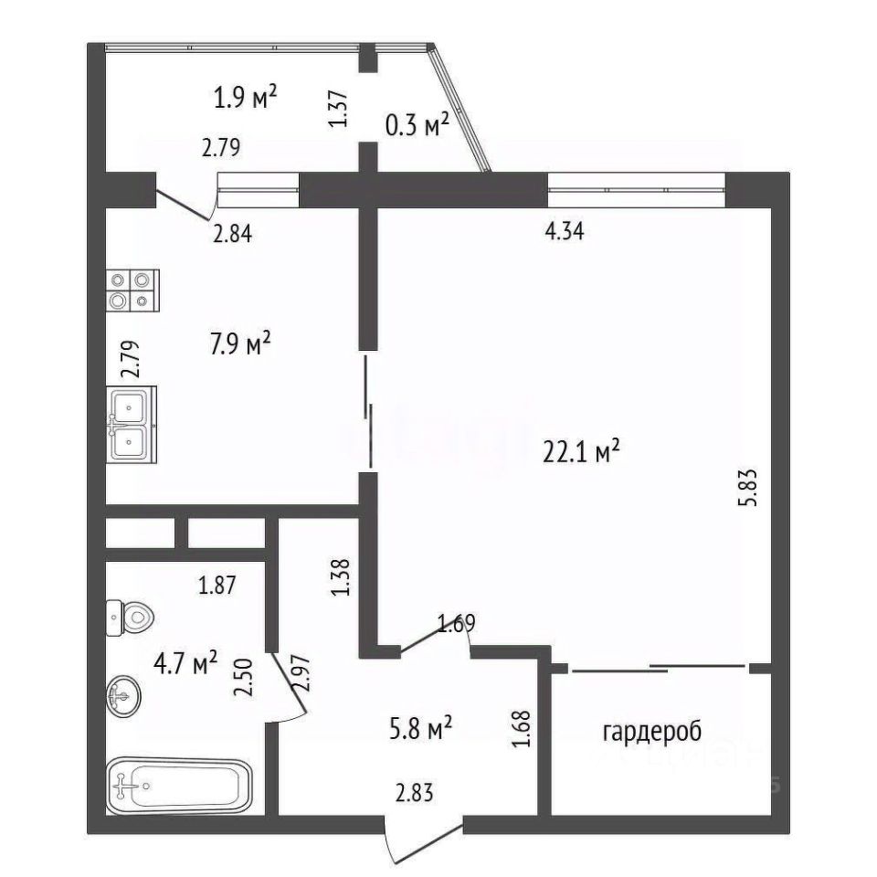 Квартира расположена на 6 этаже современного комфортного дома 2016 года постройки. Общая площадь 40,5 кв. м: - просторная комната с нишей для гардеробной 22,1 кв. м, - кухня почти 8 кв. м с выходом на застекленную лоджию, - совмещённый санузел - 4,7 кв. м - позволяет разместить и умывальник с тумбой, и полноценную ванную, и стиральную машину, в нише бойлер (на период отключения горячей воды), - холл 5,8 кв. м. Квартира линейной планировки, окна ''смотрят'' во двор.
