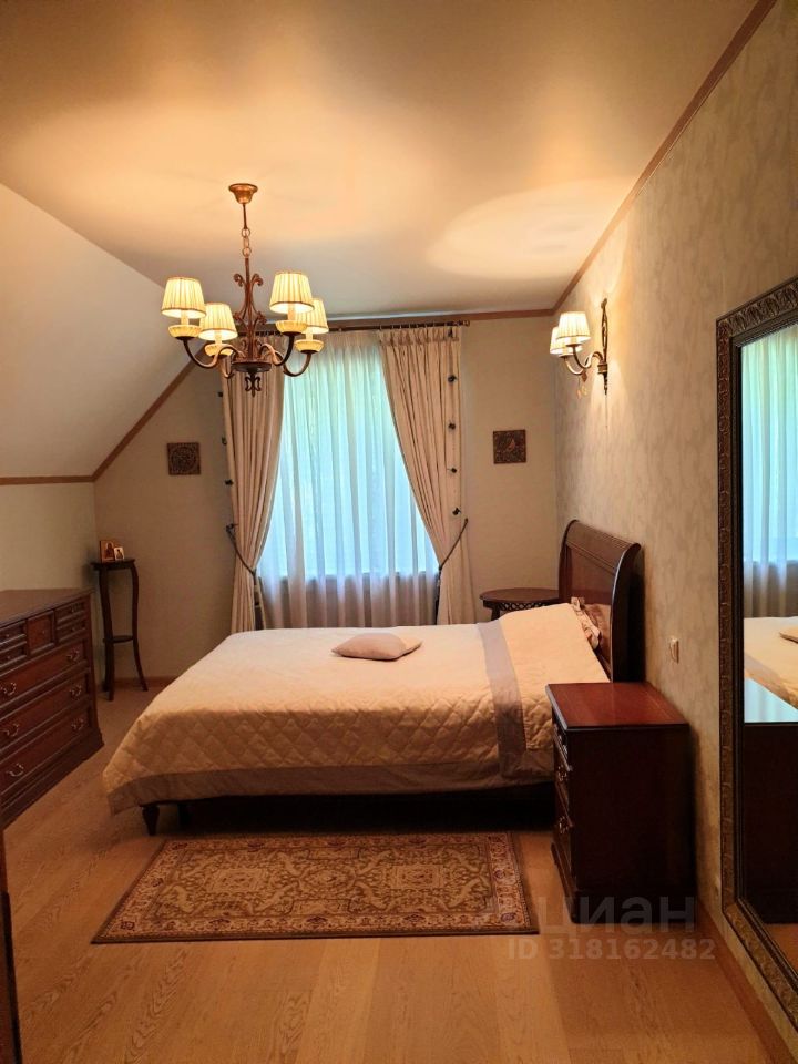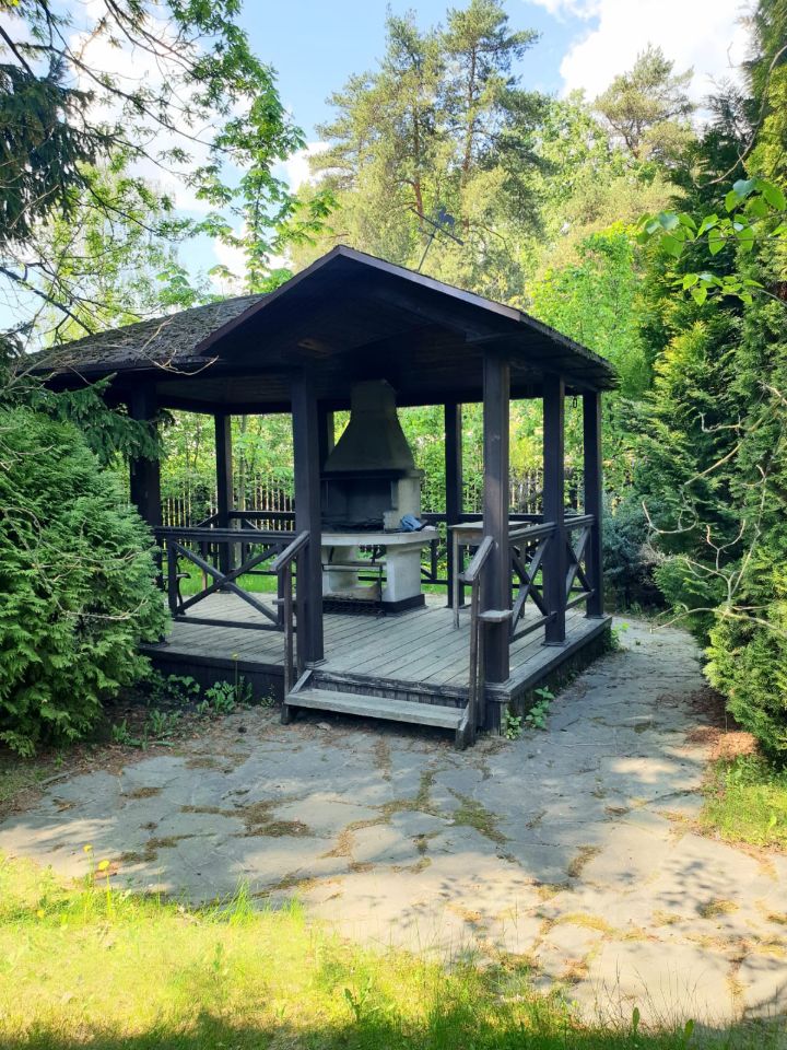 Представляем Вашему вниманию изысканный особняк для большой семьи в красивом, экологически чистом районе ближайшего Подмосковья, 17 км. от МКАД. Дом с дизайнерским ремонтом из дорогих добротных материалов. Внутренне убранство дома выполнено в едином классическом стиле с изысканной обстановкой, где уделено внимание каждой детали. На участке с ландшафтным дизайном растут вековые сосны, туи и другие ценные деревья. Чистейший лечебный воздух, санаторно-курортная зона. Неподалёку, в пешей доступности несколько озёр и лесной массив. Идеальное место для семей, ценящих тишину, уют, приватность и культуру. Первый этаж встречает просторной прихожей с дизайнерской лестницей на второй этаж, которая примыкает к наружной стене и по всей высоте балюстрады установлено витражное окно. Отдельного внимания заслуживает просторная гостиная с камином, современная кухня и столовая для семейных ужинов с выходом на террасу. Так же на первом этаже расположен сан\узел и бойлерная. Второй этаж включает в себя: Большая хозяйская спальня Две гостевых спальни Детская Гардеробная Сан/узел На территории имеется гостевой дом, оборудованная мангальная зона с беседкой, баня с комнатами для отдыха и сан\узлом, есть площадка для парковки нескольких авто. Дом оборудован и подключен к круглосуточной охранной сигнализации. По периметру участка установлены камеры видеонаблюдения. Участок сухой, ровный, правильной прямоугольной формы. Фактически участок состоит из двух смежных участков с разными кадастровыми номерами. Развитая инфраструктура поселка- сетевые и фермерские магазины, общеобразовательные школы, музыкальная, дет сады, стадион. Зимой постоянно чистят дороги. Отличная транспортная доступность до Москвы. Свободная продажа. Один взрослый собственник.