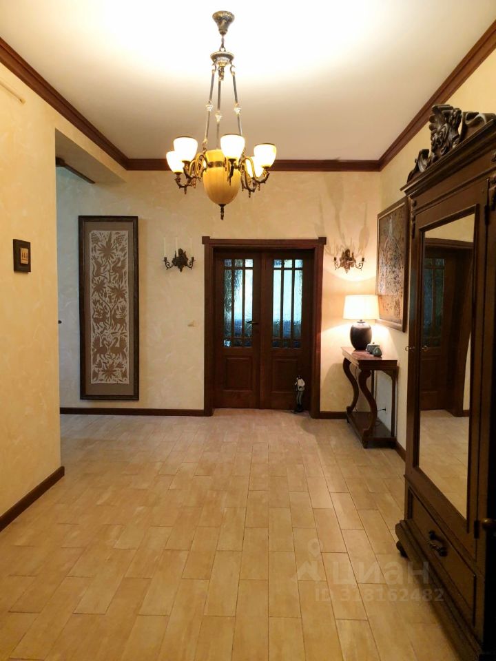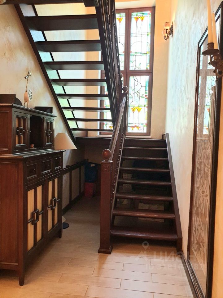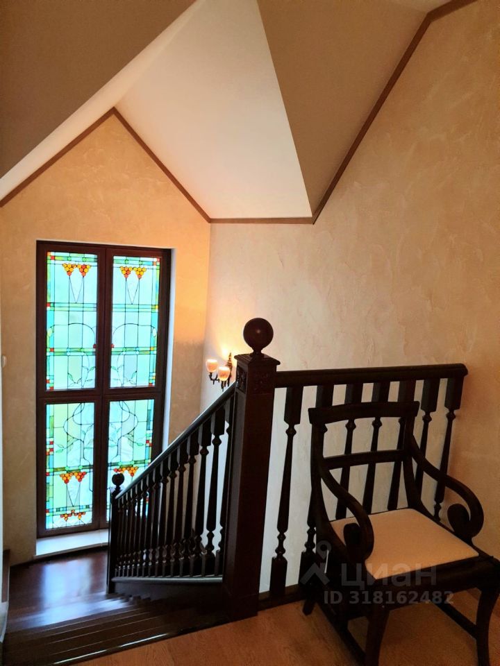 Представляем Вашему вниманию изысканный особняк для большой семьи в красивом, экологически чистом районе ближайшего Подмосковья, 17 км. от МКАД. Дом с дизайнерским ремонтом из дорогих добротных материалов. Внутренне убранство дома выполнено в едином классическом стиле с изысканной обстановкой, где уделено внимание каждой детали. На участке с ландшафтным дизайном растут вековые сосны, туи и другие ценные деревья. Чистейший лечебный воздух, санаторно-курортная зона. Неподалёку, в пешей доступности несколько озёр и лесной массив. Идеальное место для семей, ценящих тишину, уют, приватность и культуру. Первый этаж встречает просторной прихожей с дизайнерской лестницей на второй этаж, которая примыкает к наружной стене и по всей высоте балюстрады установлено витражное окно.