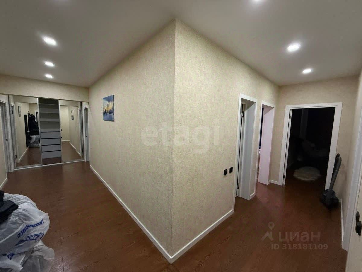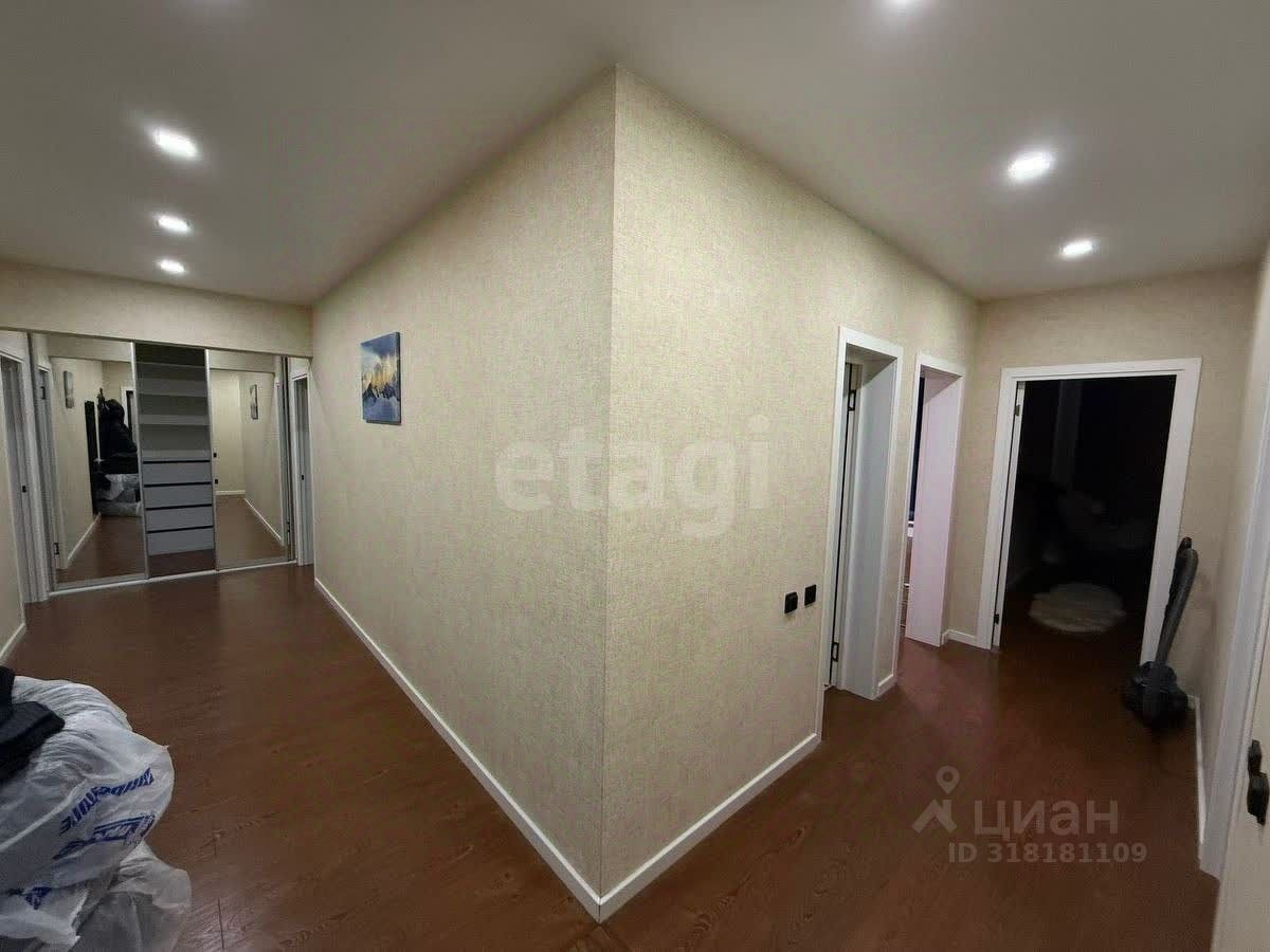 Четырехкомнатная квартира площадью 93 кв. м расположена в жилом комплексе с развитой инфраструктурой и удобной транспортной доступностью. Планировка включает две изолированные спальни, просторную кухню-гостиную, два санузла и большую гардеробную. Окна выходят на две стороны, обеспечивая равномерное естественное освещение в течение дня. Кухня оборудована встроенной техникой Bosch, мебель изготовлена на заказ компанией ''Мария''. Балкон позволяет использовать дополнительное пространство для отдыха или хранения.