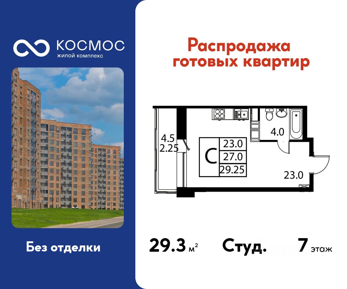 Продаётся студия в сданном доме (Корпус 3), срок сдачи: 2-кв. 2025, общей площадью 29.25 кв.м., на 7 этаже.