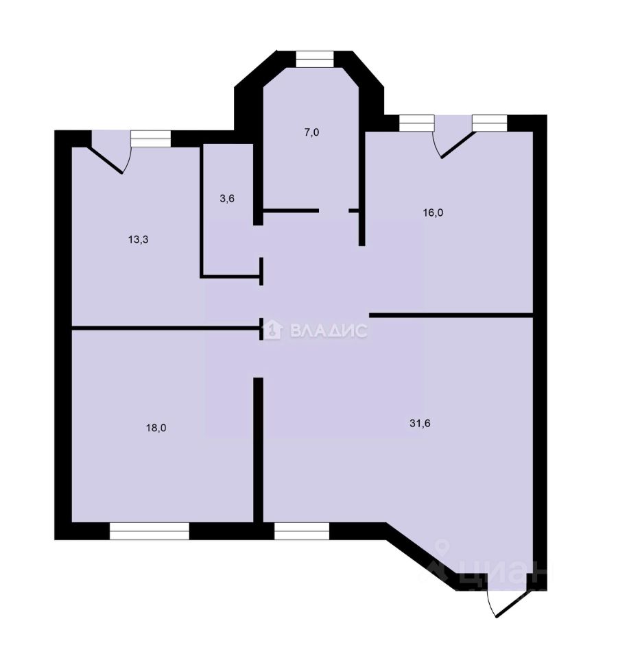 Квартира расположена на улице Черняховского и имеет общую площадь 89,5 кв. м, из которых 65,6 кв. м — жилая площадь. Высота потолков 3.1 м создаёт ощущение простора и свободы. Две лоджии предлагают отличные возможности для отдыха и наслаждения видом на тихий и уютный двор.