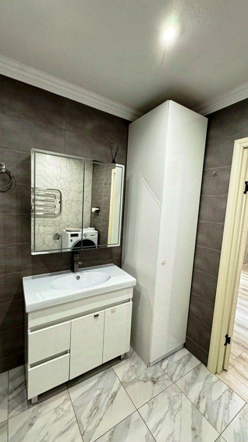 Кухня оснащена посудомоечной машиной, электроплитой, духовым шкафом, встроенной микроволновкой, холодильником, электрическим чайником. Наличие входящих фильтров на квартиру и дополнительно фильтрованной воды на кухне (покупка и замена фильтров по желанию арендаторов).