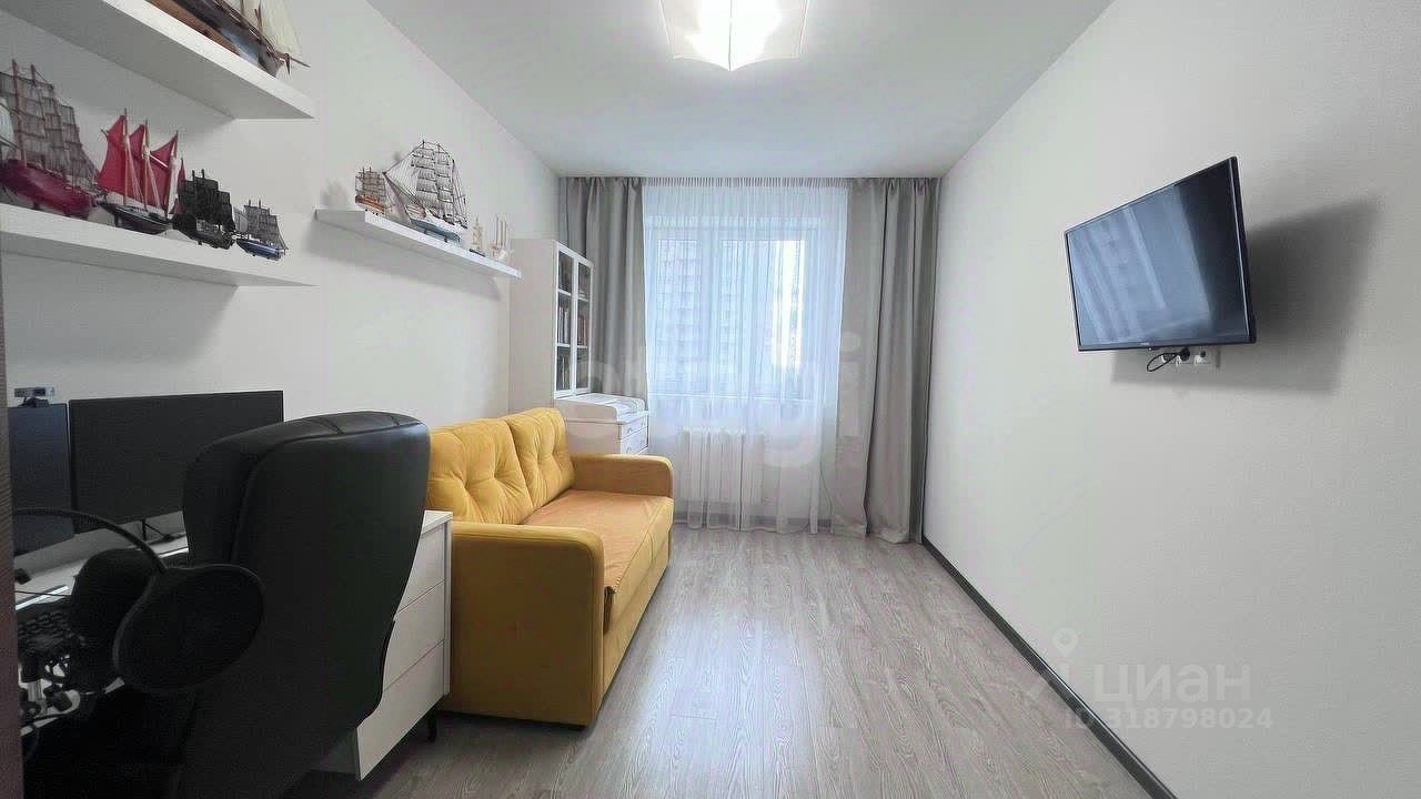 Просторная квартира площадью 91,4 кв. м расположена в хорошем районе с развитой инфраструктурой . Объект находится на 13 этаже 25-этажного дома, построенного в 2014 году по современным стандартам. Квартира полностью готова к проживанию — вся мебель остается новым владельцам, вывозится только электроника. Планировка продумана для комфортной жизни: две изолированные спальни площадью 14 и 15 кв. м, отдельный кабинет, который можно использовать как третью спальню или детскую, и просторная кухня-гостиная 25 кв. м с выходом на балкон. Особое внимание уделено системам хранения — в квартире оборудованы две гардеробные комнаты площадью 3 и 4 кв. м.
