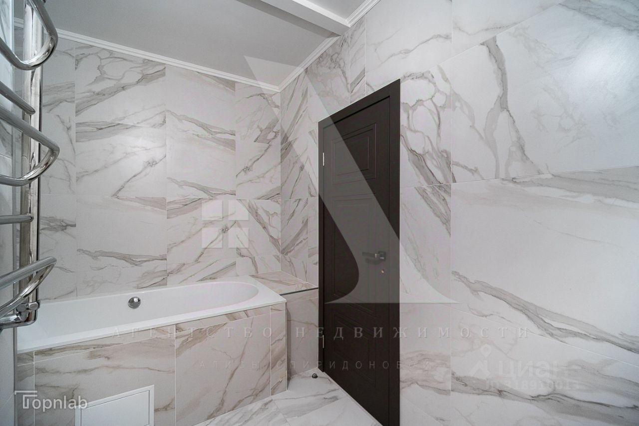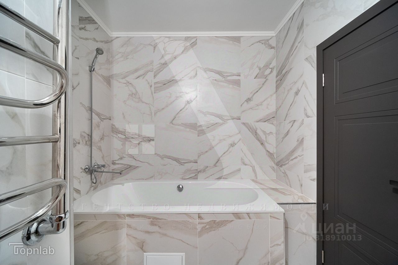 На полу уложен немецкий ламинат, в санузле широкоформатная итальянская плитка. Разведена электрика для разных сценариев освещения. Санузел совместный.