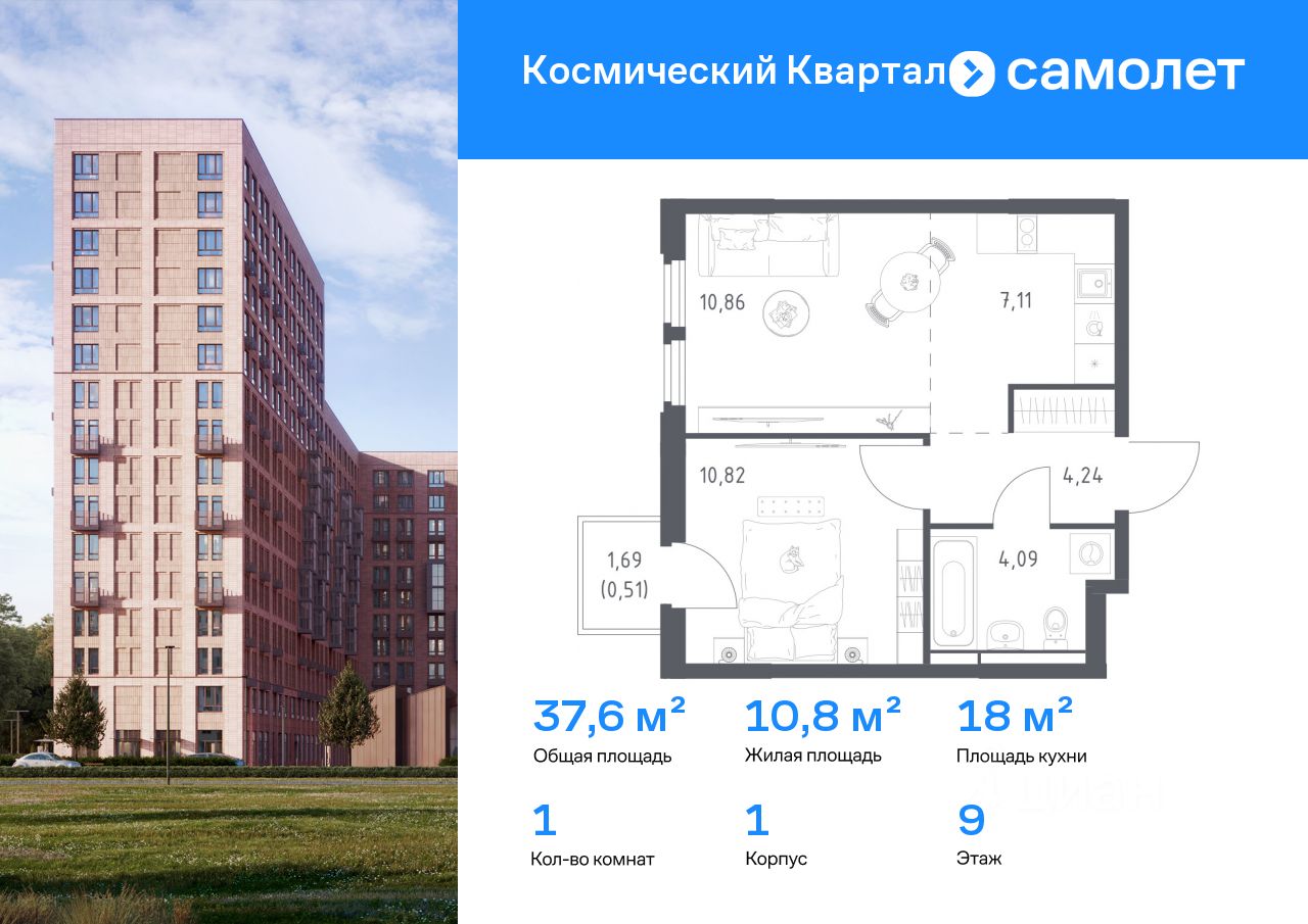 Строим кварталы для жизни с заботой о будущем. Предлагается 1-комнатная квартира комфорт-класса 37,63 кв.м в корпусе 1 на 9 этаже, в ЖК ''Космический Квартал'' Квартира с чистовой отделкой. Доступность дополнительных опций уточняйте у застройщика.