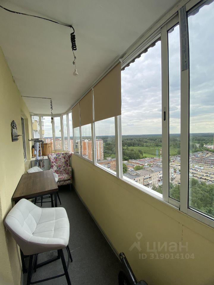 Из гостиной, с кружечкой кофе, можно выйти на большую застекленную лоджию (8 кв.м. - приятный бонус к площади квартиры), где очень комфортно позавтракать, наслаждаясь свежим воздухом и живописными видами на лес с панорамного, 21-го этажа.