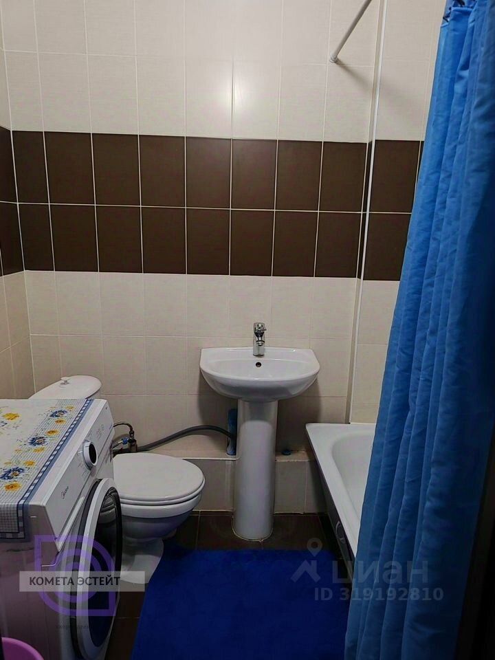 - Санузел совмещённый: установлены ванна, раковина, унитаз и стиральная машина.