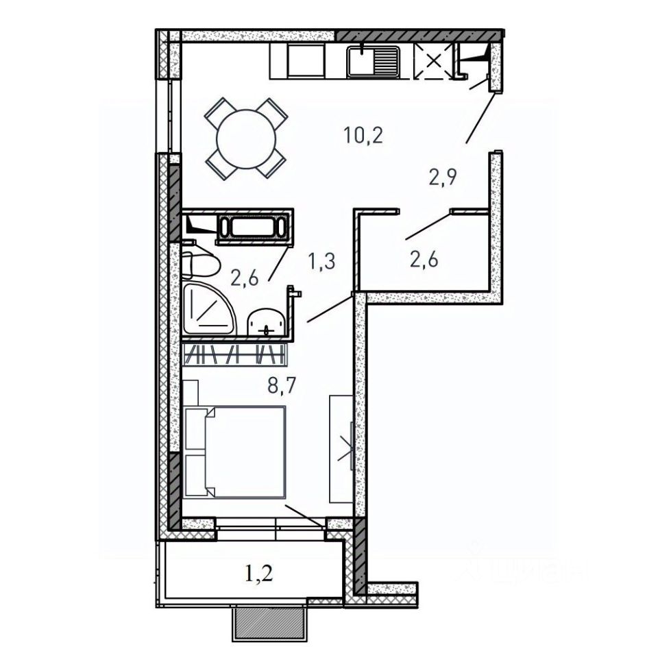 Жилая площадь8,7 м2