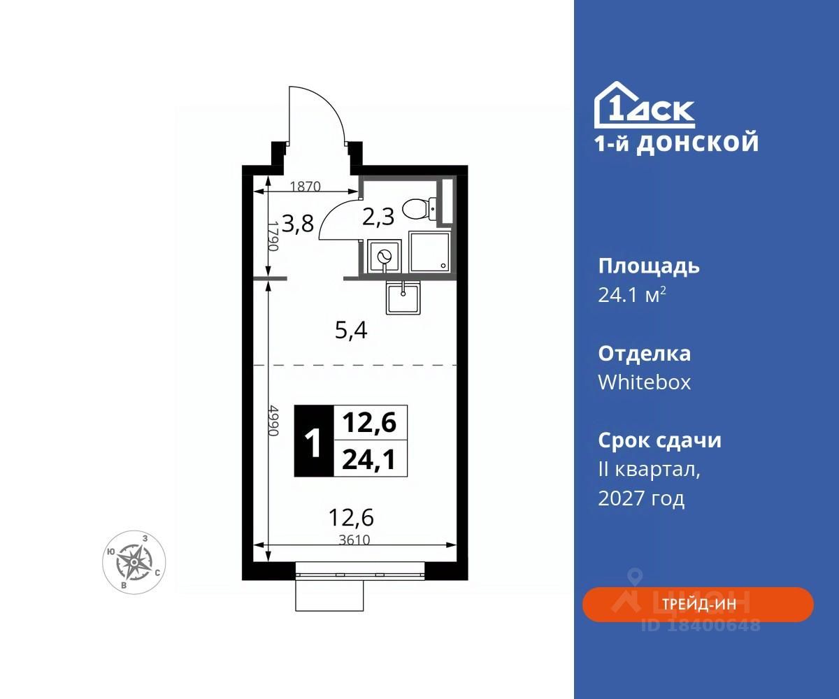 Максимальные скидки при 100% оплате. Trade-in вместо первоначального взноса - выгодно обменяйте вашу квартиру на новую! Прямая продажа от застройщика! Жилой Комплекс класса Комфорт плюс. Продаётся студия номер 554 общей площадью 24.1 кв.м на 8-м этаже 24 этажного дома. Отделка Whitebox.