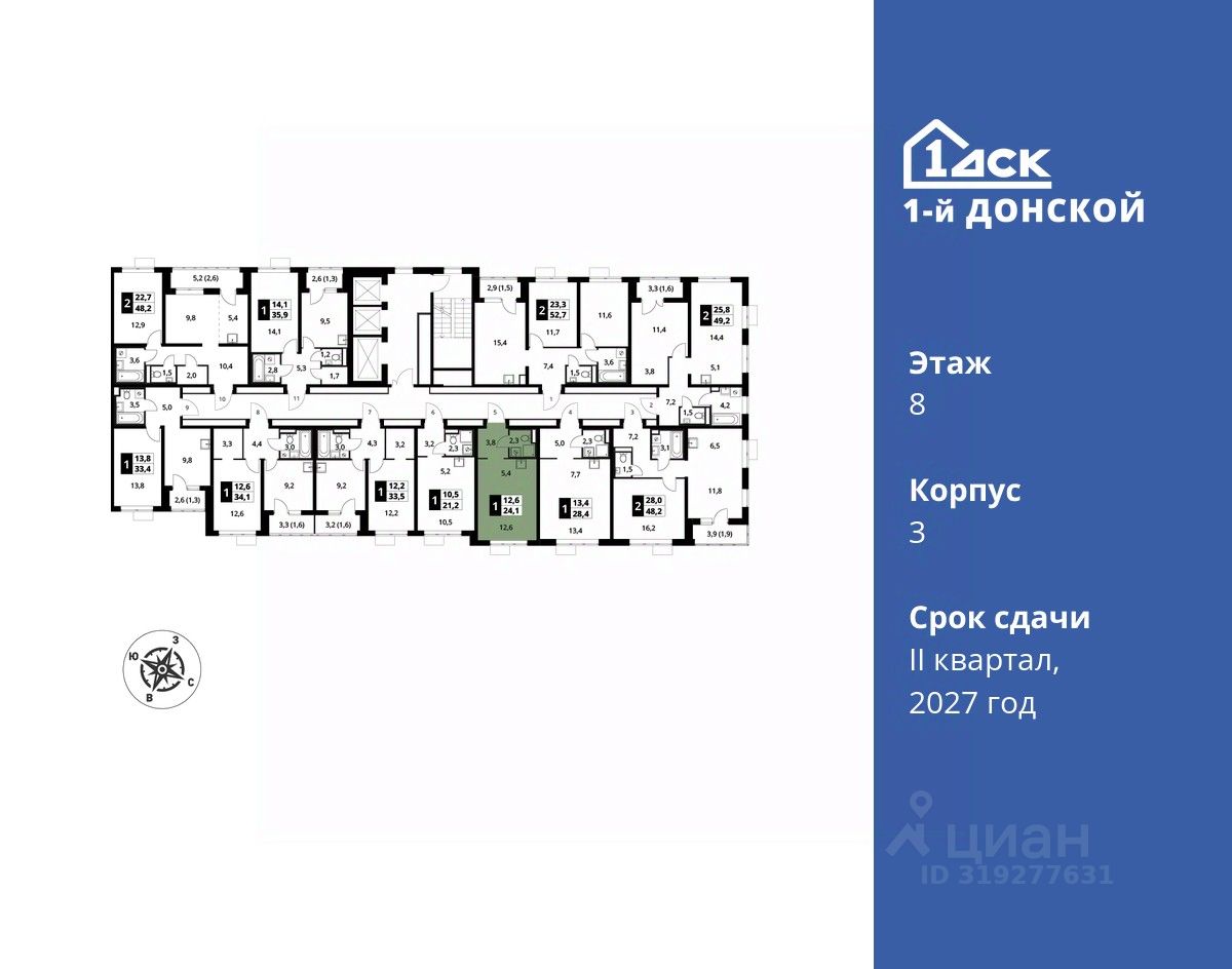 продам 1-к, пр-т-й Донской ЖК, 34 744 808 ₽
