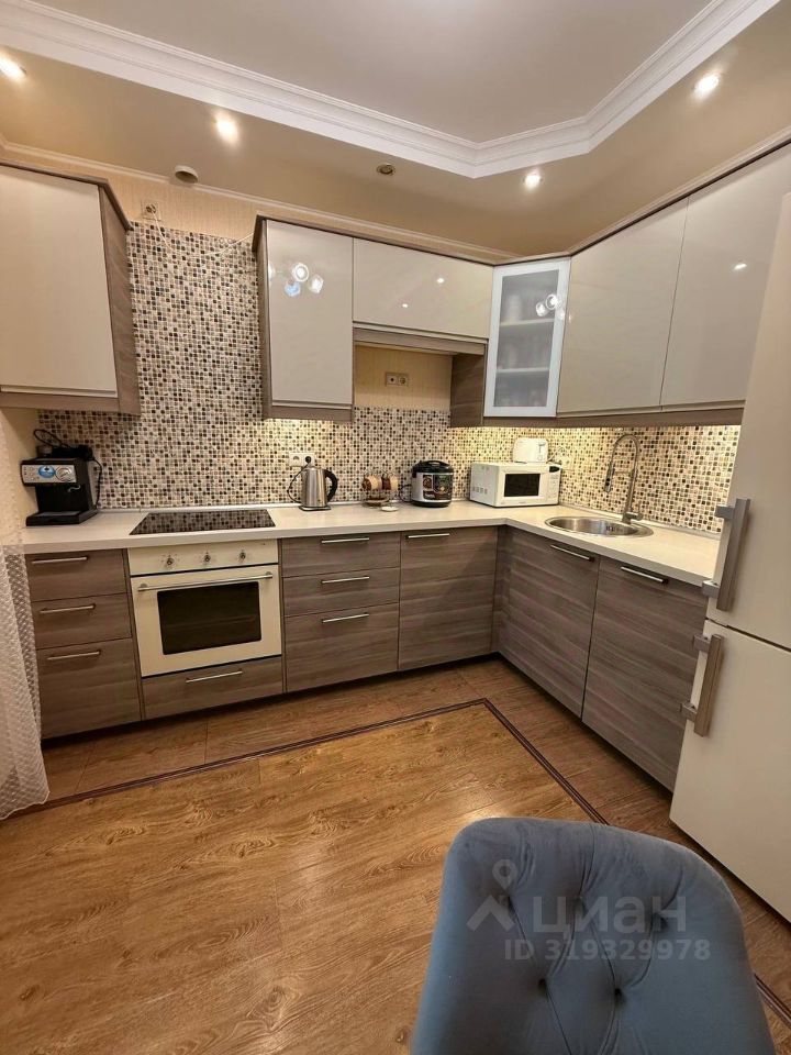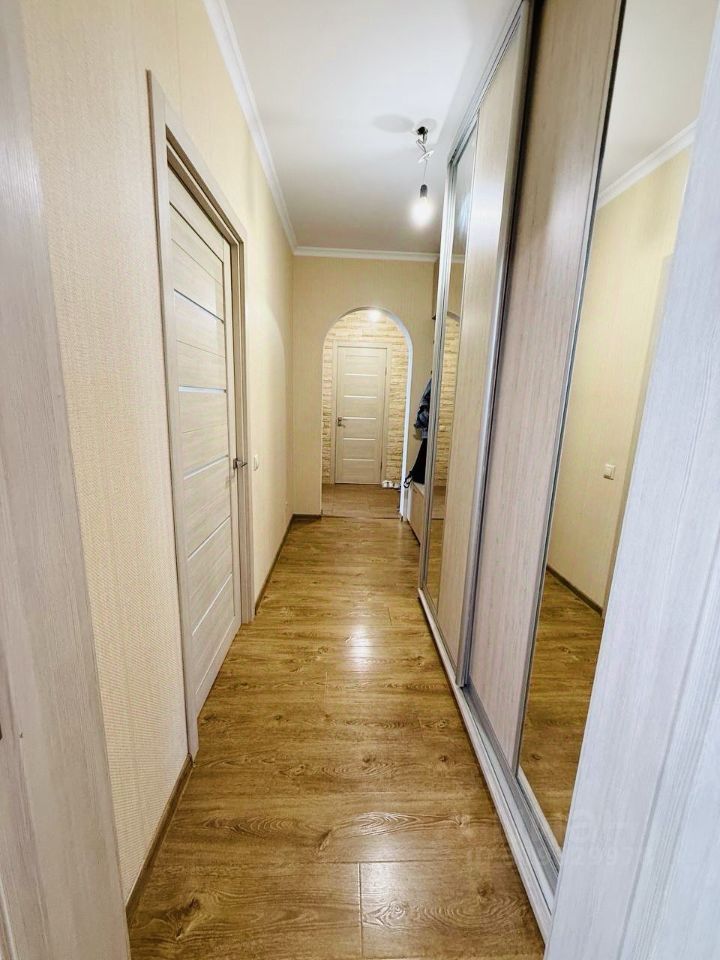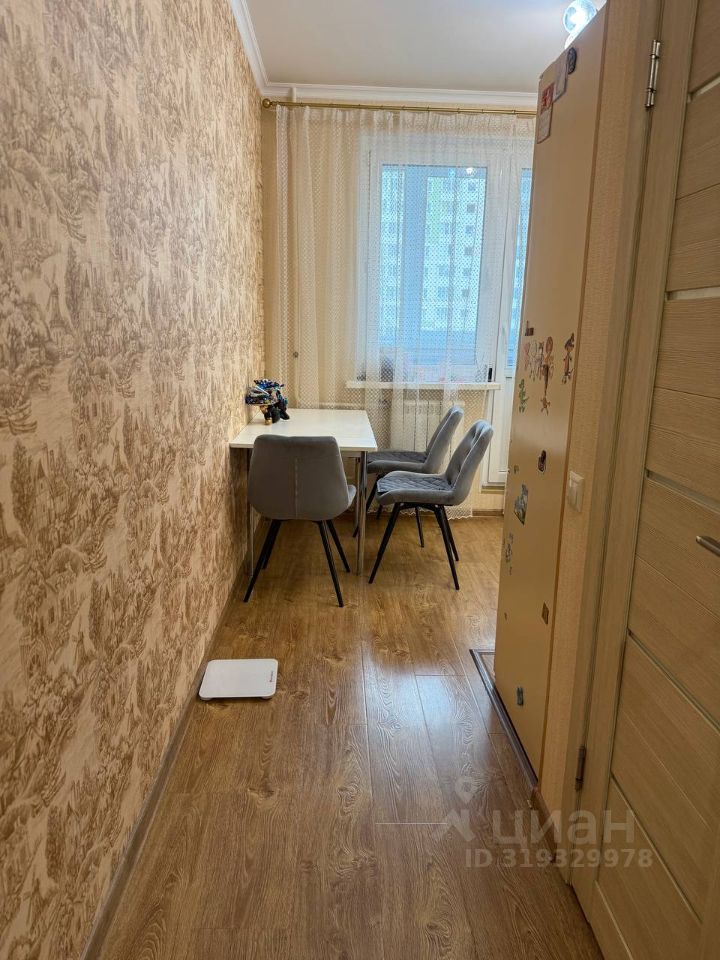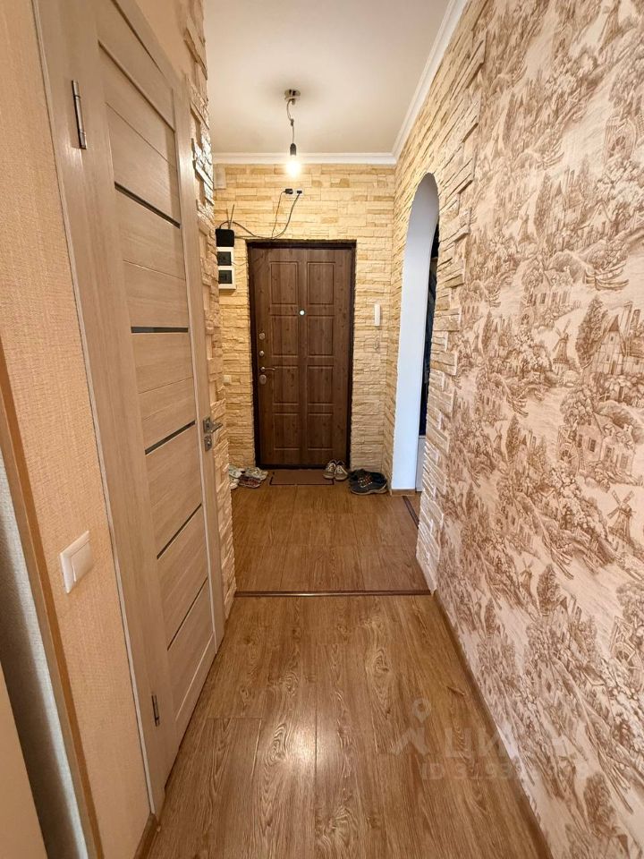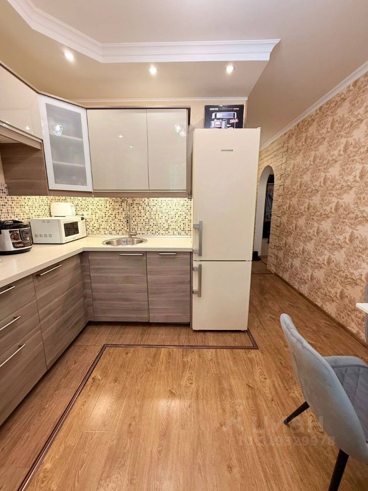Квартира линейного типа, комнаты изолированы. В квартире сделан качественный косметический ремонт: на полу качественный ламинат светло-коричневого цвета с ярко-выраженной структурой дерева, в ванной, прихожей и части кухни керамическая плитка, на стенах обои светлых тонов, потолок из гипсокартона, вся электрика установлена по своему проекту: изменены места расположения розеток. Удобная кухня общей площадью 10 кв. м. оборудована встроенной кухонной мебелью с электрической плитой, электрическим духовым шкафом, холодильником и СВЧ-печью.