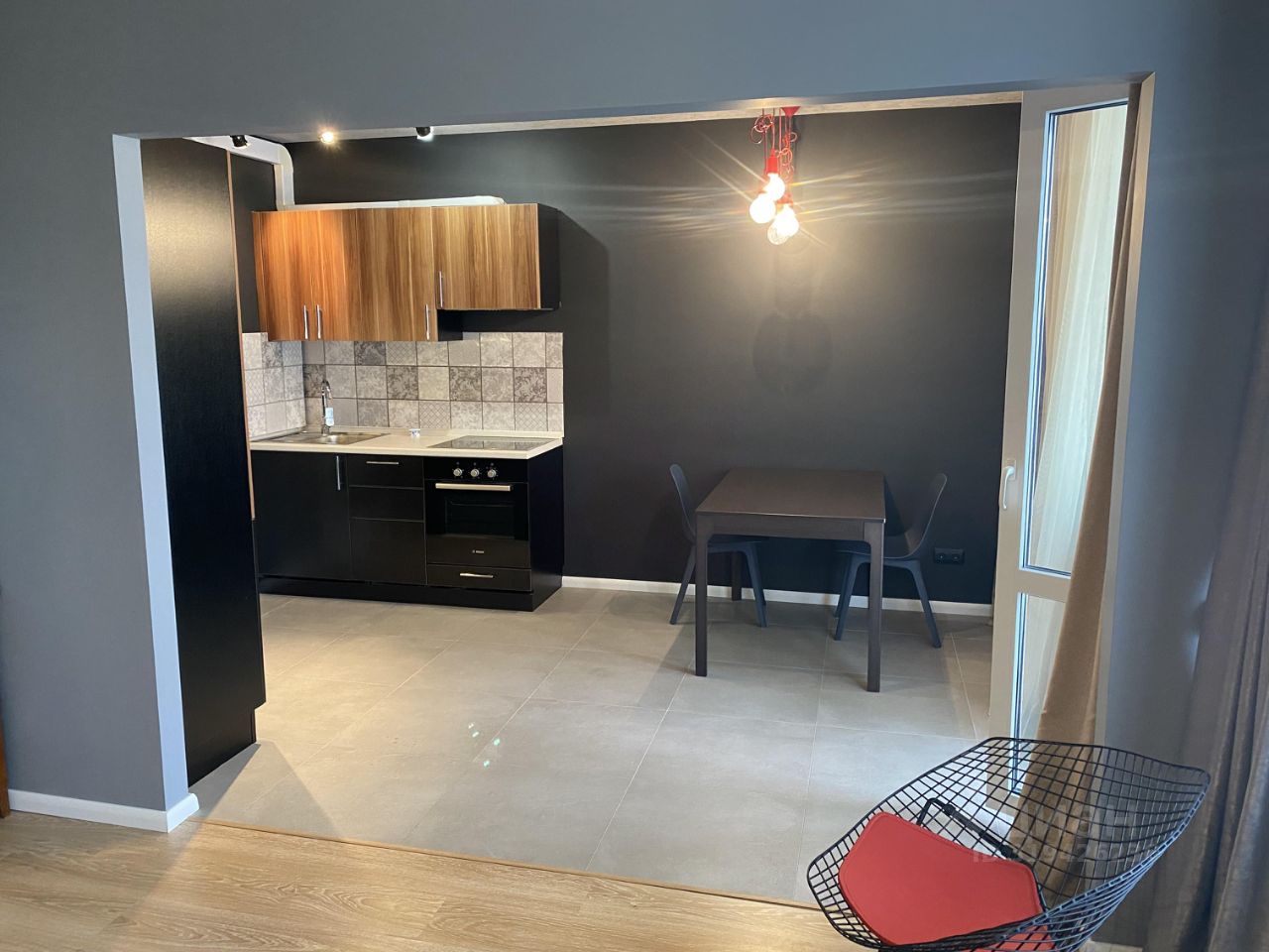 Квартира в отличном состоянии, с качественным дизайнерским ремонтом. Комната соединена с кухней, с выделением зон. Санузел совмещенный с душевой кабиной. Просторная застекленная лоджия. Объемная гардеробная комната.