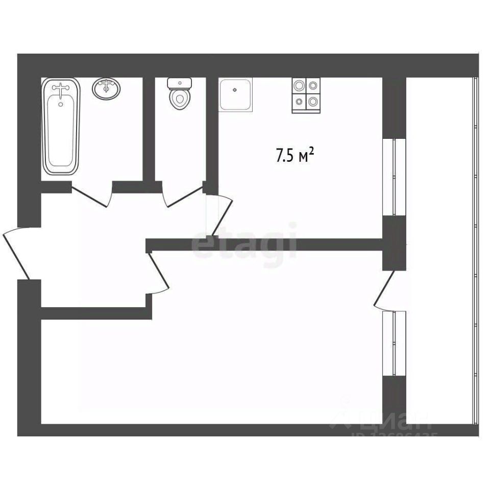 Квартира общей площадью 35,4 кв. м с продуманной планировкой: жилая зона занимает 16,8 кв. м, а просторная кухня — 7,5 кв. м, что обеспечивает комфортное размещение мебели и бытовой техники. Санузел раздельный, что повышает удобство пользования. В квартире выполнен качественный ремонт под ключ — можно заезжать и жить без дополнительных вложений. Объект подходит как для собственного проживания, так и для инвестиций.