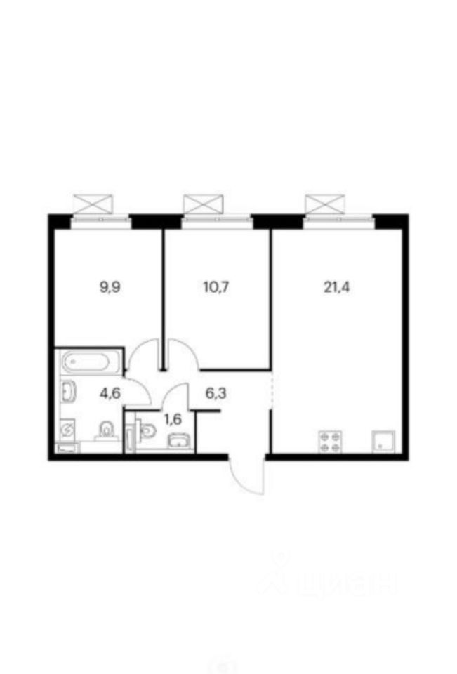Продается 2х комнатная квартира с 2мя изолированными спальнями, 2мя санузлами и большой кухней-гостинной - 21,4 кв м. Окна квартиры выходят во двор. Квартира светлая.