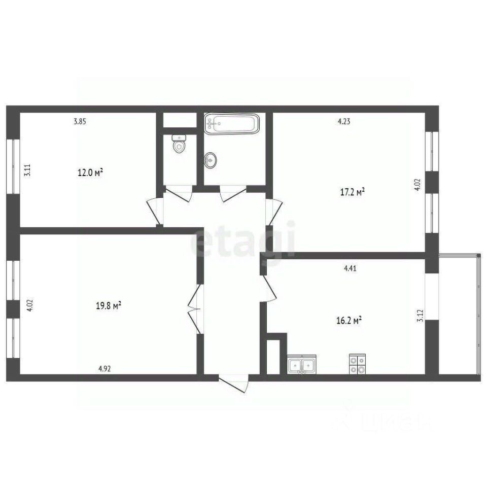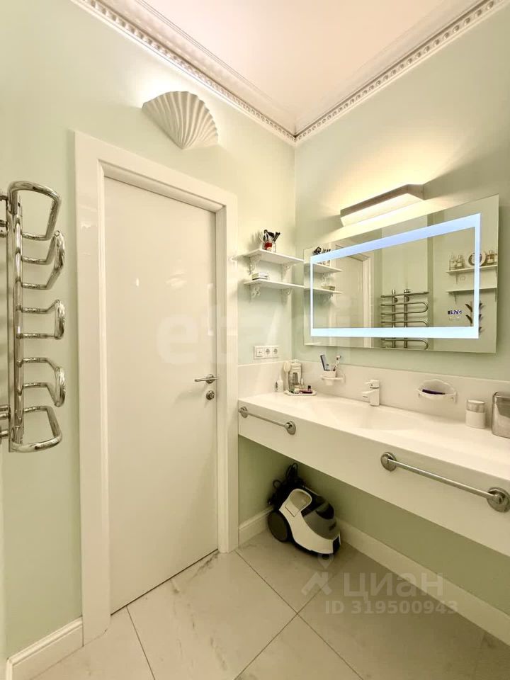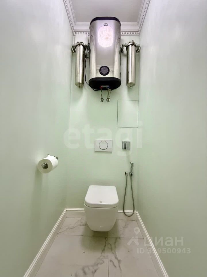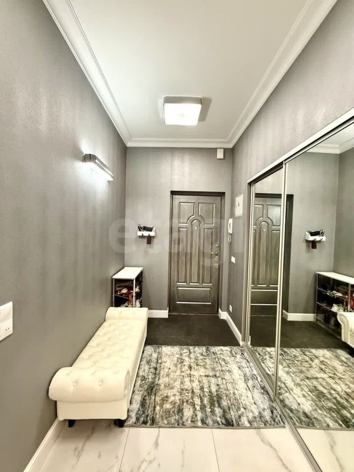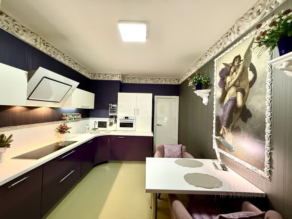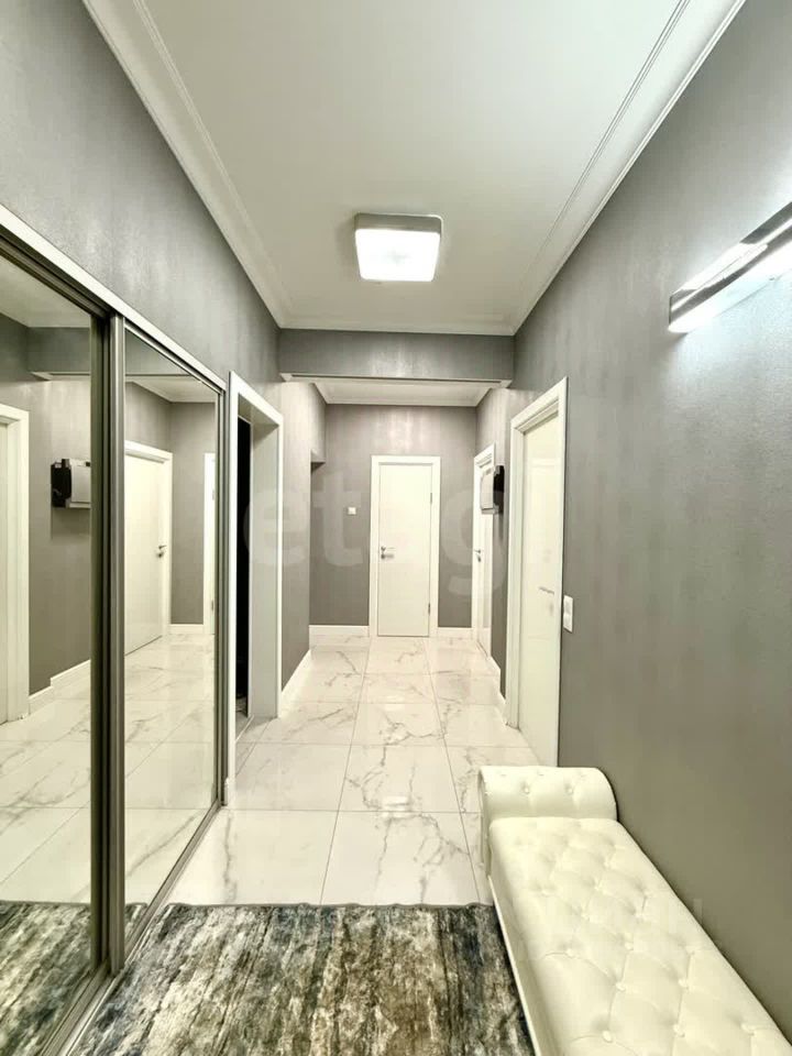 Кухня площадью 16 м² оснащена стильным гарнитуром со встроенной техникой — варочной панелью, духовым шкафом, посудомоечной машиной и вытяжкой. Дополнительный комфорт обеспечивает сплит-система. В квартире продумано хранение: встроенные шкафы-купе позволяют рационально использовать пространство. Санузел раздельный, с бойлером на 80 литров, стены окрашены в мягкий мятный оттенок. Окна оборудованы жалюзи и шторами, что добавляет интерьеру уюта.