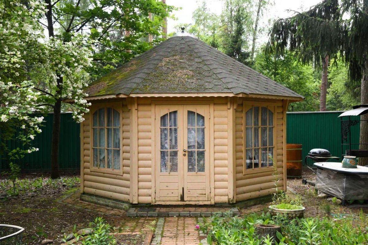 На участке: подсобное помещение, крытая стоянка на 2 автомобиля, беседка, два подсобных помещения, виноградник.