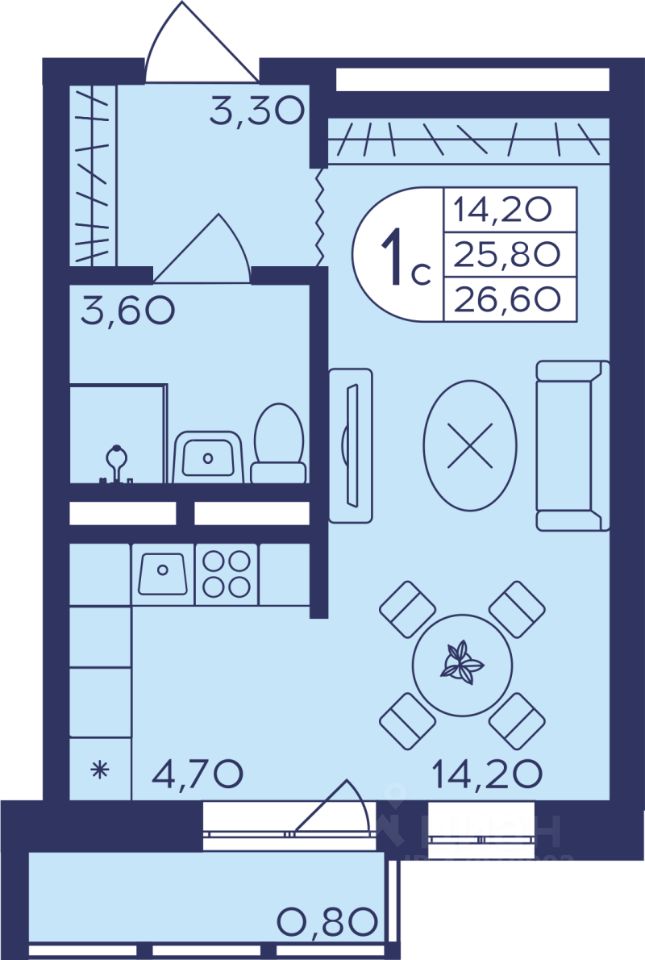 Общая площадь26,3 м2