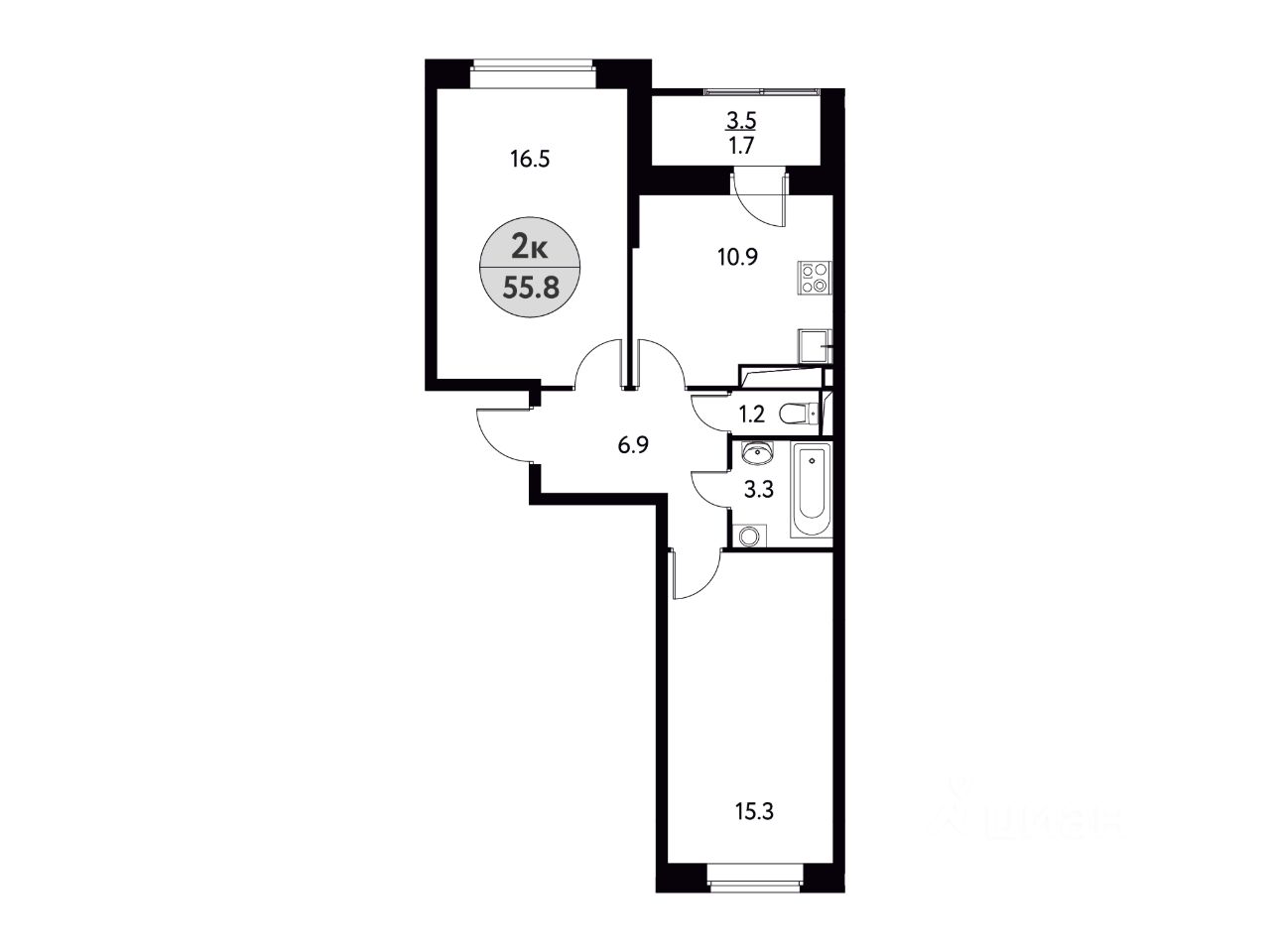 Общая площадь55,8 м2