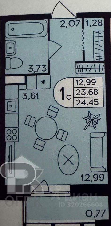 Id 386399. Представляем уютную квартиру площадью 24 м² в новом монолитном доме.