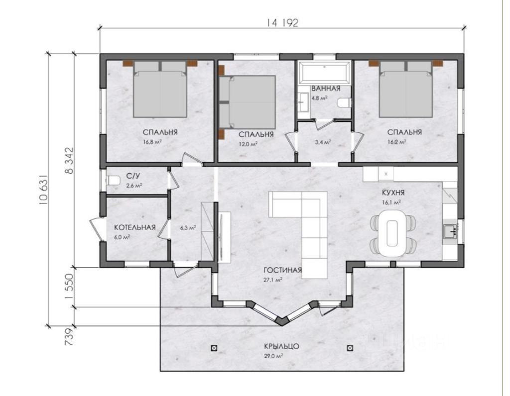 Дом с функциональной планировкой, каркасный, хорошо утепленный, панорамные окна. Отделка White box+ - нужно только покрасить стены в любимый цвет и завезти мебель. Заведены электричество, вода. Есть дизайн-проект. Газ по границе с домом, подвод по заявке в Мособлгаз.