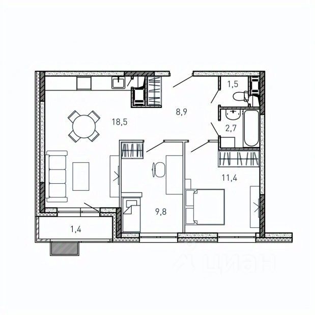 Общая площадь54,2 м2