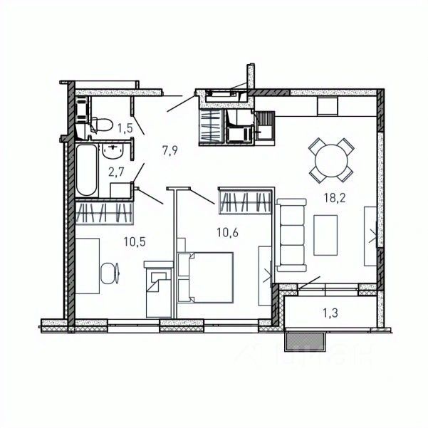 Общая площадь52,7 м2