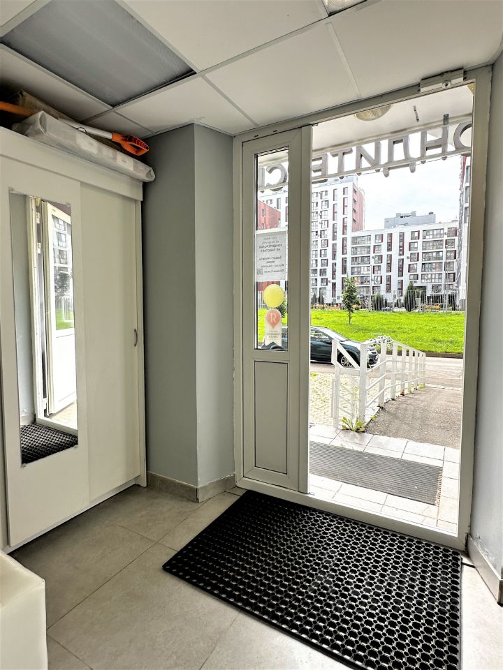 Современный многонаселенный микрорайон. Возле дома: школа, садик, остановка общественного транспорта, торговый центр, парковка.