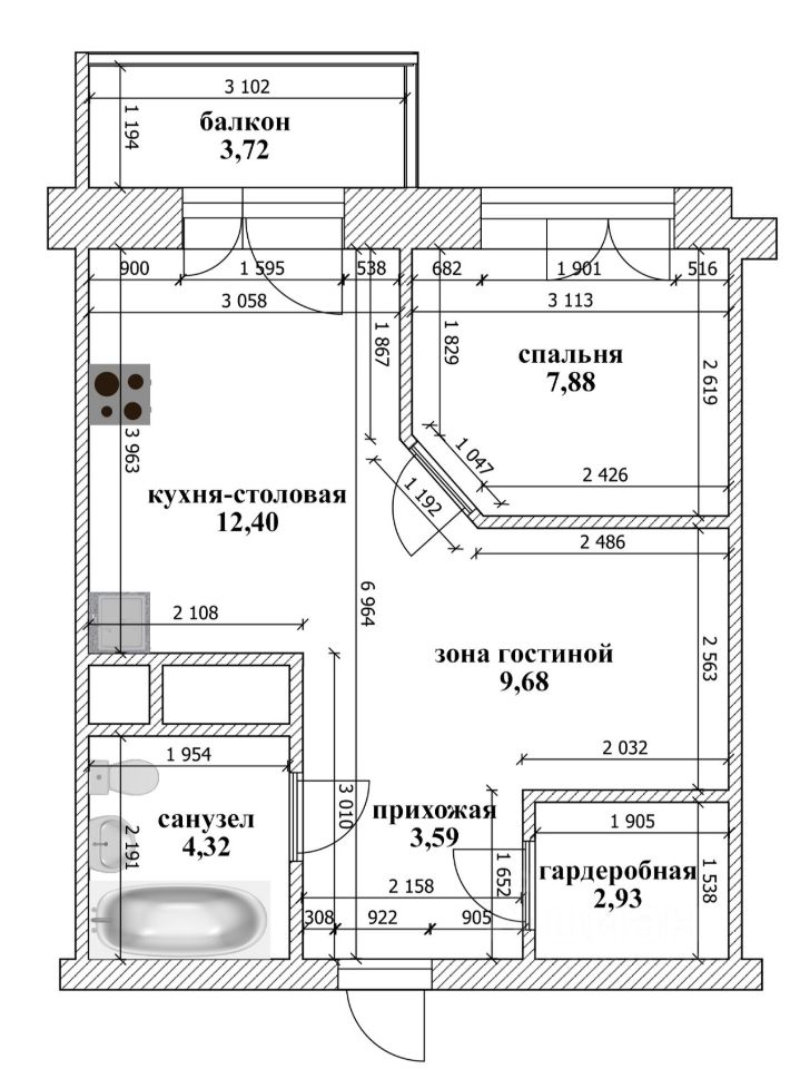 Общая площадь42,3 м2