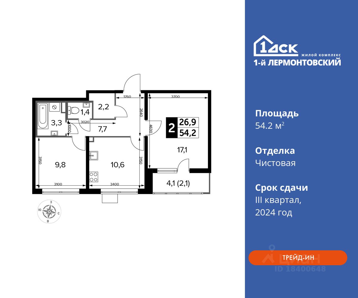 Особенности: - Квартира доступна к покупке в Trade-In. - Просторная спальня, в которой можно разместить большую кровать. - Линейная планировка - максимальная функциональность и удобство. - Увеличенная ширина окна/окон - больше света и визуального простора. - Раздельный санузел - Стандартное количество квартир на этаже - оптимальный выбор для городской жизни. - Гардеробная - удобство для хранения и организации вещей. - Лоджия - уютное место для отдыха и тишины. - Вид из окна: двор