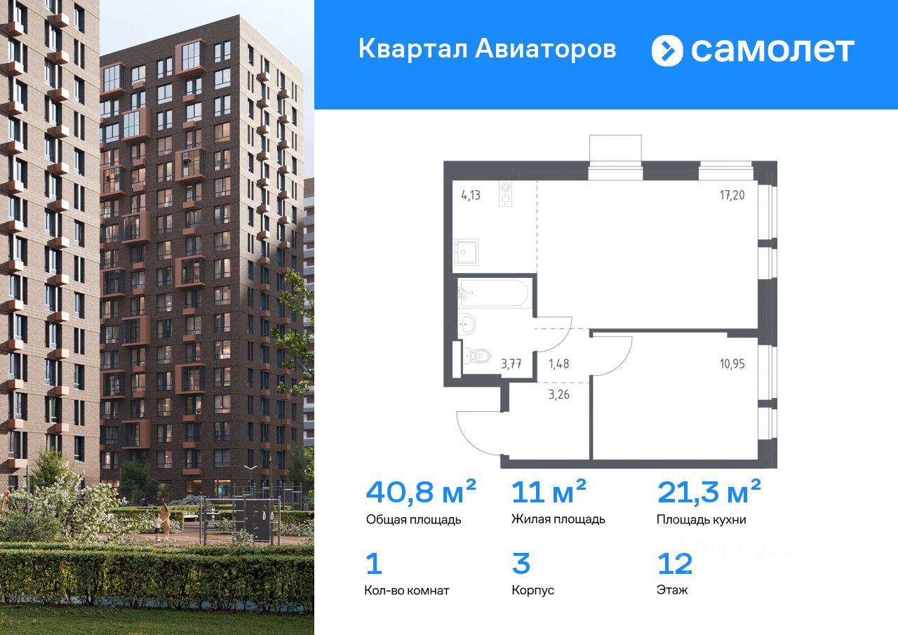 Строим кварталы для жизни с заботой о будущем. Предлагается 1-комнатная квартира комфорт-класса 40,79 кв.м в корпусе 3 на 12 этаже, в ЖК ''Квартал Авиаторов'' Квартира с чистовой отделкой. Доступность дополнительных опций уточняйте у застройщика.