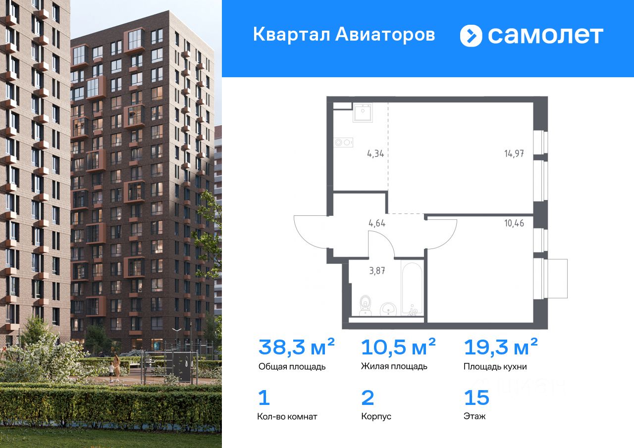 Строим кварталы для жизни с заботой о будущем. Предлагается 1-комнатная квартира комфорт-класса 38,28 кв.м в корпусе 2 на 15 этаже, в ЖК ''Квартал Авиаторов'' Квартира с чистовой отделкой. Доступность дополнительных опций уточняйте у застройщика.