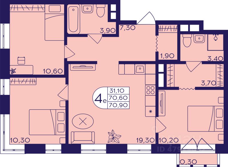 Продаётся 4-комнатная квартира в строящемся доме (Корпус 410), срок сдачи: I-кв. 2027, общей площадью 70.9 кв.м., на 4 этаже. ЖК ''Героев'' возводится в центре г.о. Балашиха, в мкрн Железнодорожный. Проект представляет собой 4 квартала монолитно-кирпичных домов комфорт-класса. Предлагаются студии, 1-, 2- и 3-комнатные квартиры с готовой отделкой, планировки - евро и классика. На территории построят детские сады и школы. В центральной части застройки оборудуют зоны для спорта и командных спортивных игр, велодорожки, детские игровые площадки и сквер с местами для отдыха. На первых этажах жилых корпусов будут магазины, банки, кафе и другие предприятия сферы услуг и торговли. Возле домов организуют авто- и велопарковки.