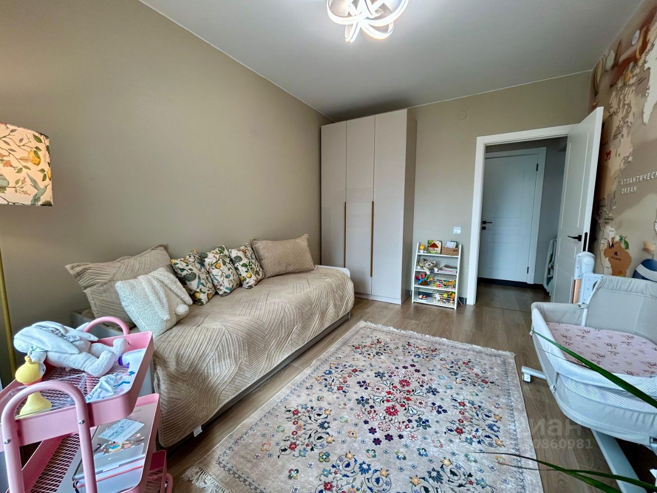 По квартире: - Установлены дорогие межкомнатные двери Porta Prima (белая эмаль) с дорогой качественной фурнитурой - Входная дверь также заменена с хорошей шумоизоляцией - Все выключатели света в квартире сенсорные, работают с умным домом - Все светильники заменены на светодиодные - На кухне и в прихожей дорогой керамогранит - Во всей квартире заменены розетки на дорогие стеклянные - Во всей квартире заменены плинтуса - В каждой комнате установлены системы приточной вентиляции бризеры Tion. В спальне установлен в принципе самый дорогой бризер из их линейки. Благодаря бризерам в квартире всегда свежий воздух и даже лучше, чем на улице за счет системы фильтров. Сами бризеры и установка бризеров конечно дорогие. - Кухня: вытяжка weisgauff, микроволновка встроенная дорогая, духовка bosh, посудомойка, встроенный холодильник, измельчитель пищевых отходов Bort (одна из самых дорогих версий), очень хорошая индукционная плита), телевизор - Большой санузел: ванна установлена из литого мрамора (она вечная, с ней ничего не будет). Из этого же материала раковина. Встроенный супер качественный и вместительный шкаф (установили несколько месяц назад за 100к). Зеркало с подсветкой и подогревом. - Детская: кровать (раскладывается в двуспальную), шкаф - Спальня: кровать, мебельный гарнитур лазурит (консоль и тумбочка), пуфик, зеркало с подсветкой, светильники напольные, ковёр - В каждой комнате шторы блэкаут - В квартире две очень хорошо оборудлванные гардеробные (одна при входе, другая - в спальне).