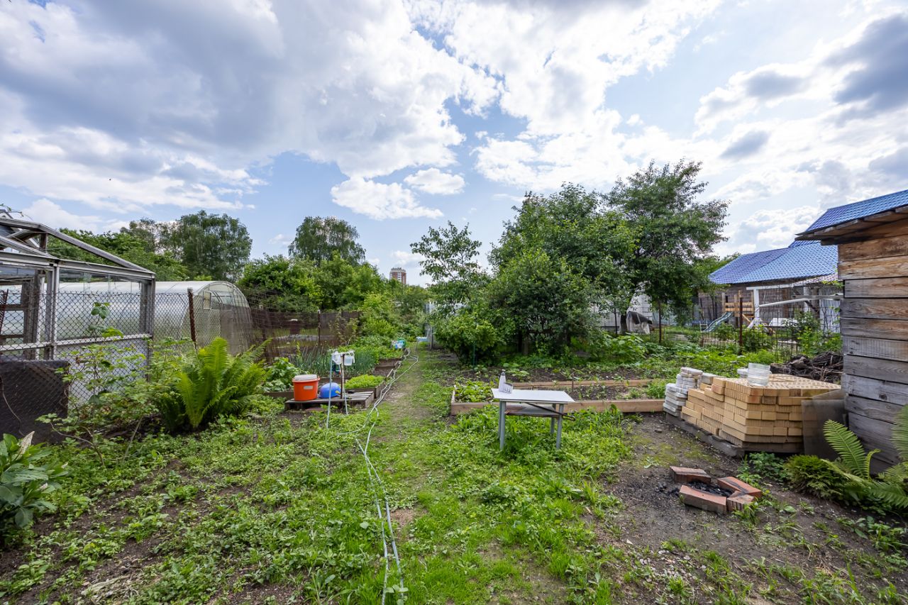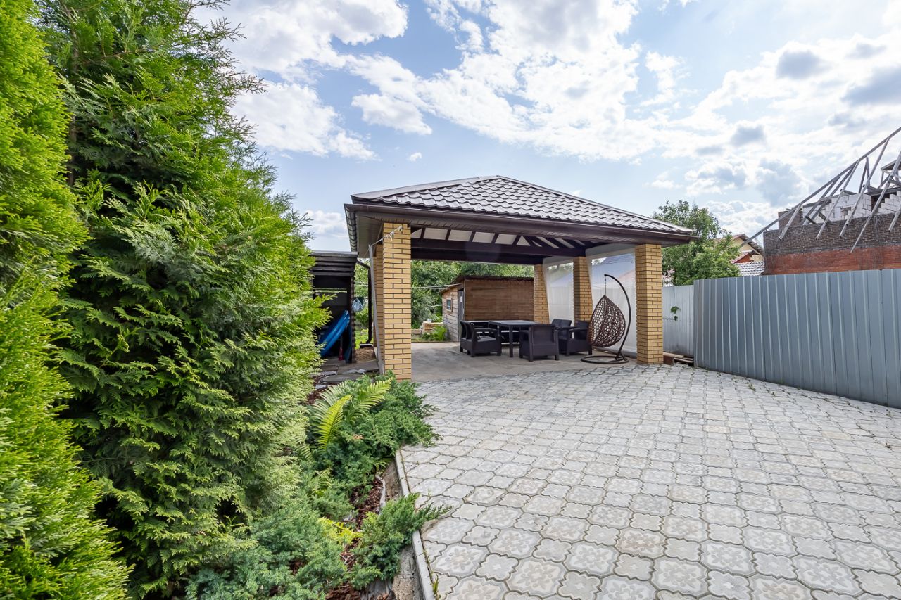 Участок 7 соток: •Ровный, сухой, с плодоносящими деревьями, розами и туями. •Уютная беседка для летних ужинов. •Парковка на 3 машины с асфальтовым покрытием.