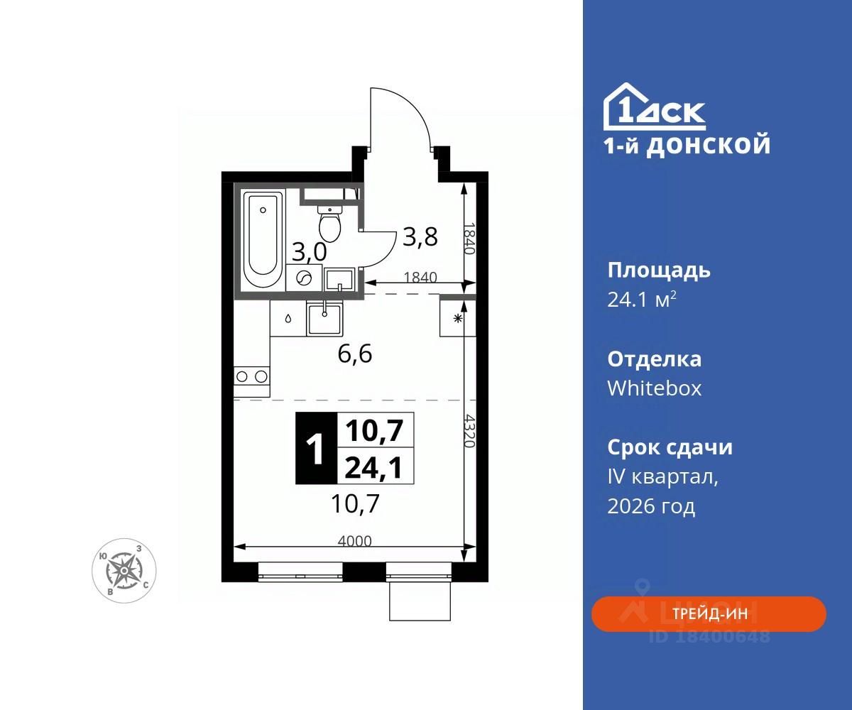 Максимальные скидки при 100% оплате. Trade-in вместо первоначального взноса - выгодно обменяйте вашу квартиру на новую! Прямая продажа от застройщика! Жилой Комплекс класса Комфорт плюс. Продаётся студия номер 561 общей площадью 24.1 кв.м на 10-м этаже 24 этажного дома. Отделка Whitebox.