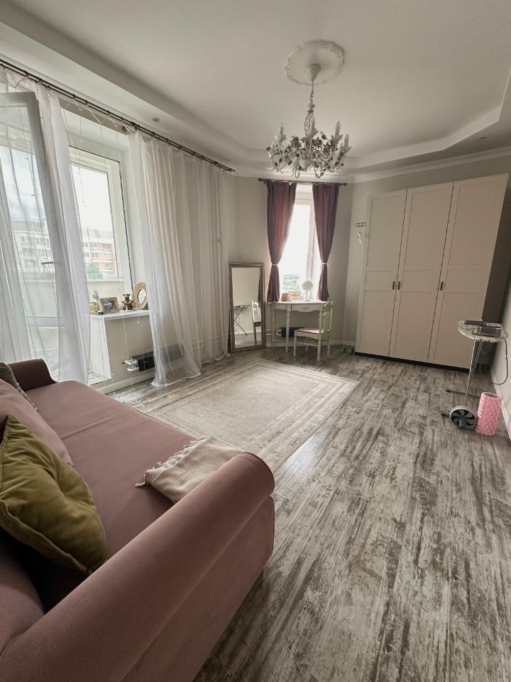 Квартира в хорошем состоянии, продается частично с мебелью. Просторная гостиная - 17 кв. м, спальня - 12кв. м, высота потолков - 3 м, все окна выходят во двор. Встроенная техника, кондиционер. Окна выходят на юг и юго-запад.