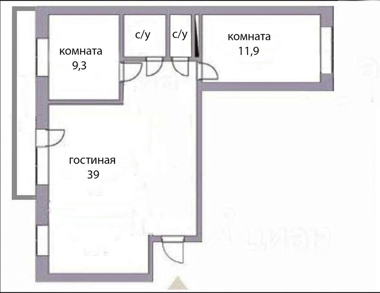 Гостиная комната объединена с кухней -- получилась огромная гостиная, новый владелец может оставить, как есть, либо отделить комнату, воздвигнув две стены, при этом спроектировав кухню, прихожую и гостиную так, как будет удобно его семье.
