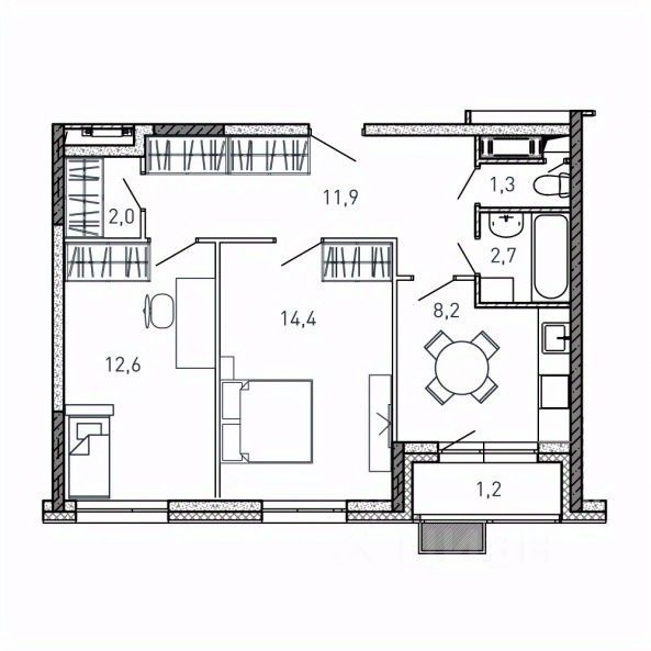 Общая площадь54,3 м2