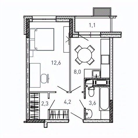 Жилая площадь12,6 м2