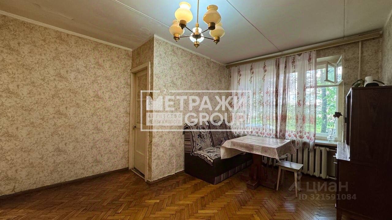 Общая площадь квартиры 43 метра: - изолированная комната 9 метров с небольшой кладовкой (3 квадратных метра) - смежная комната 18 метров. - кухня 6 метров - совмещённый санузел. Прекрасно сохранившийся паркет, санузел частично в плитке. Окна квартиры выходят в тихий, тупиковый двор.