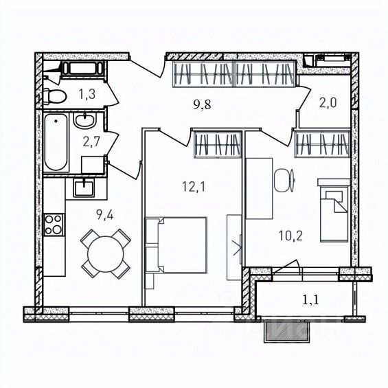 Общая площадь48,6 м2