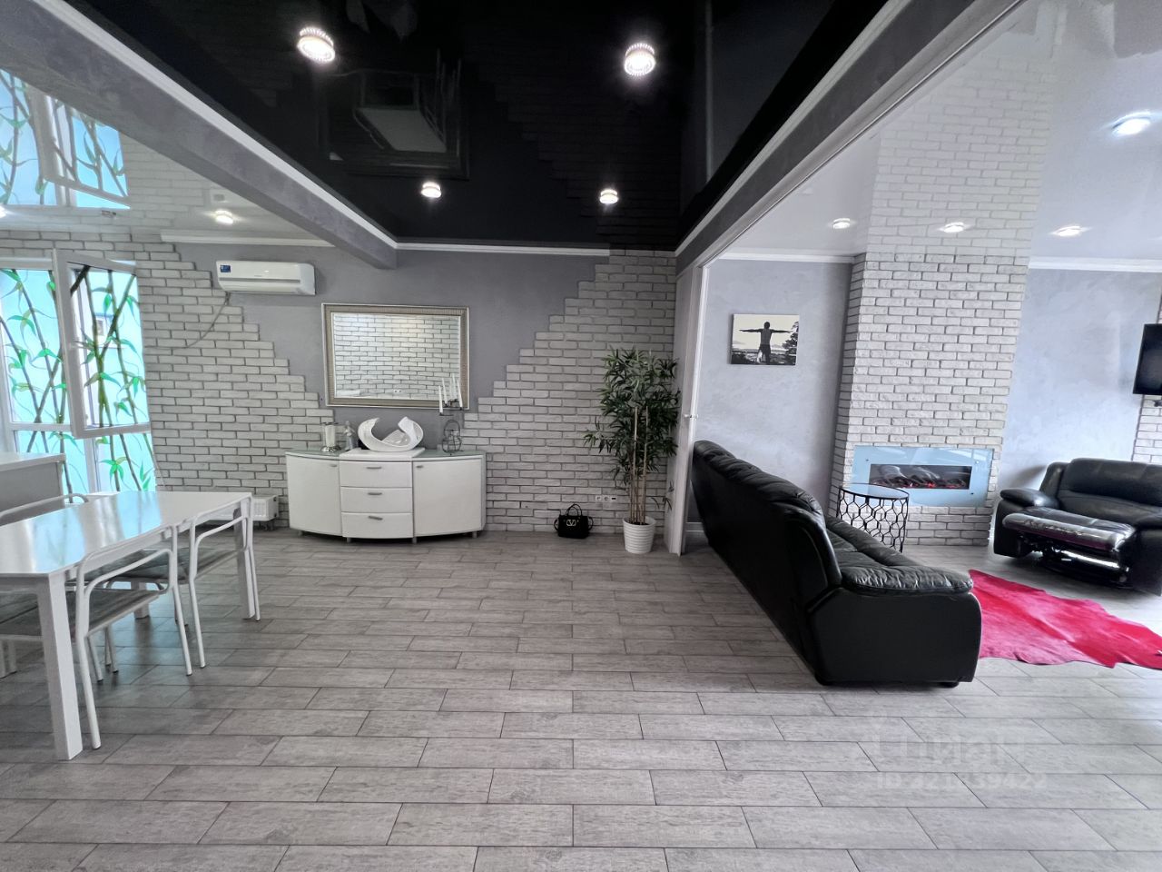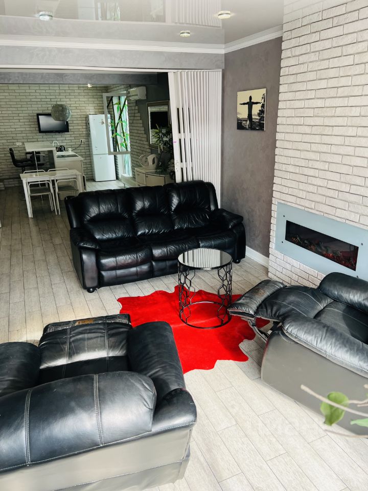 Гостиная с камином с выходом на террасу (есть выдвигающаяся перегородка, изолирующая полностью комнату)