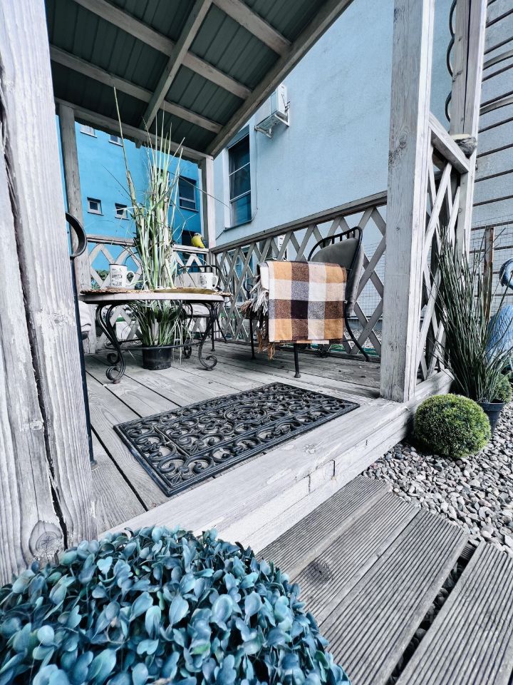 Огромная терраса с беседкой, и местом для хранения.