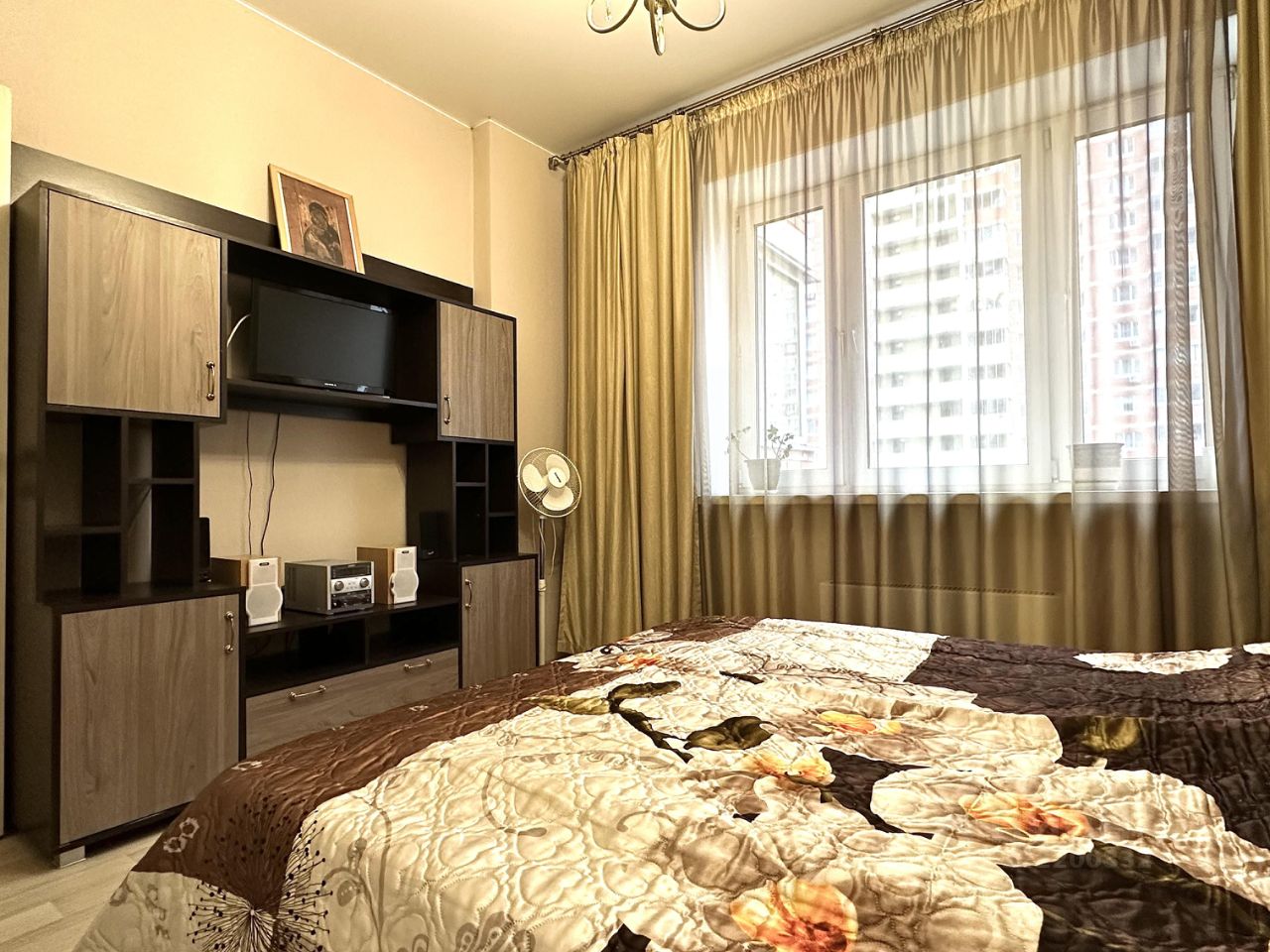 В квартире выполнен евроремонт, что создаёт атмосферу уюта и современности. Мебель уже расставлена как на кухне, так и в комнате, поэтому можно сразу заселяться. В квартире есть всё необходимое для комфортного проживания: кондиционер, холодильник, телевизор и стиральная машина. Ванная комната оборудована душевой кабиной, а также есть балкон.
