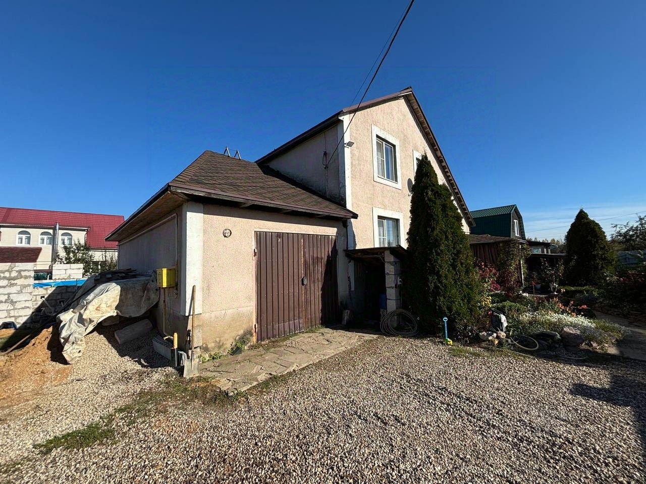 - Газ - Электричество 15 кВт - Автономный септик - Вода скважина.
