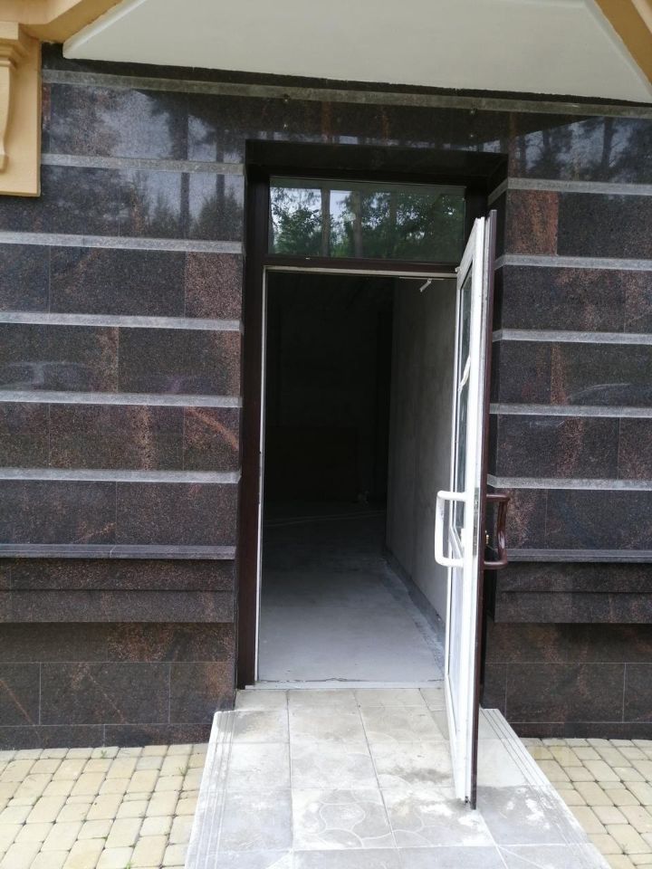 Помещение площадью 545 кв.м. располагается на -1, 1 и 2 этажах с отдельным входом с улицы (указан на фото стрелкой).