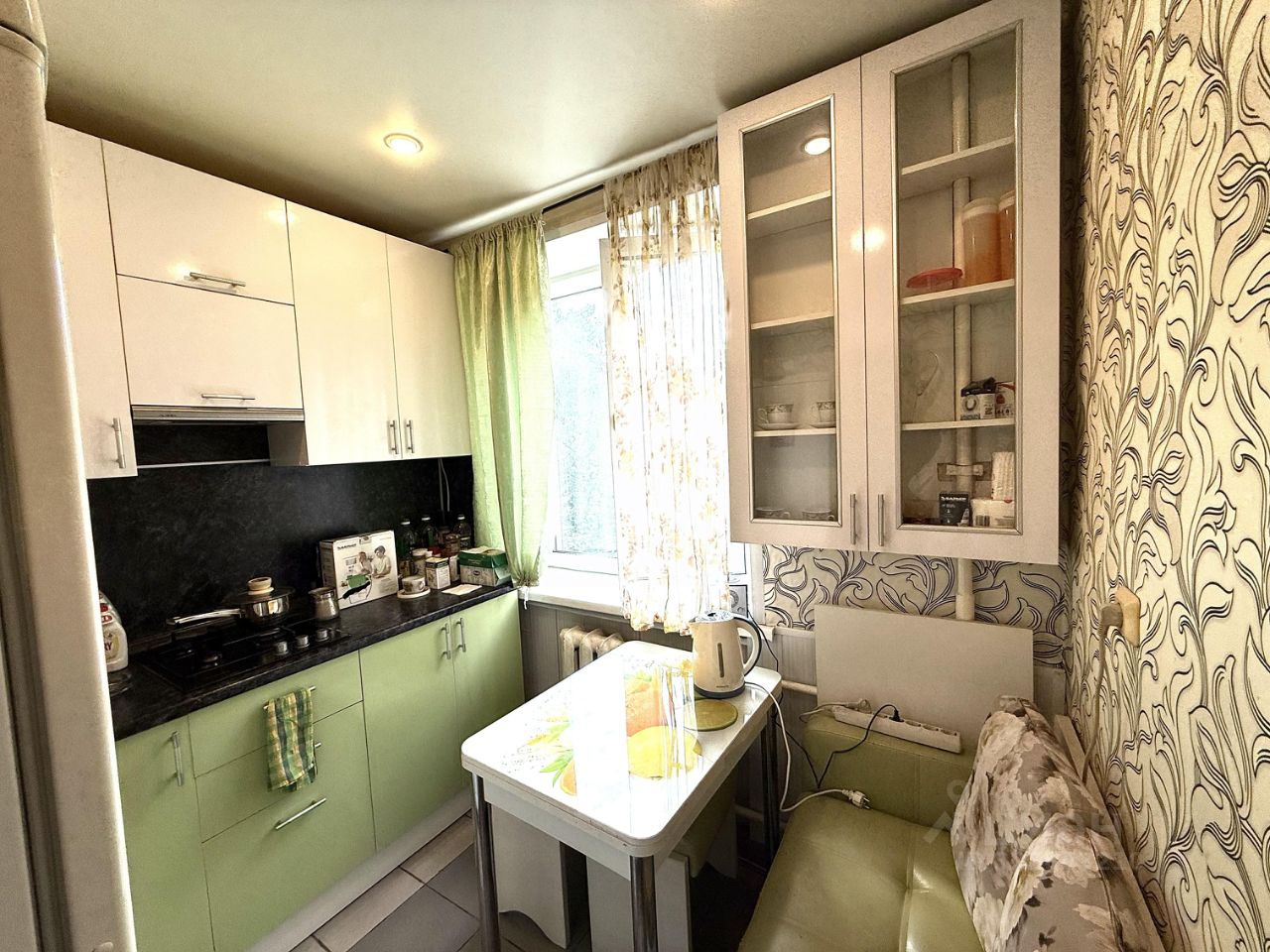 В квартире сделан косметический ремонт, частично остается мебель и техника: кухонный гарнитур, газовая плита, посудомоечная машина. В комнатах установлены пластиковые окна, балкон застеклен.